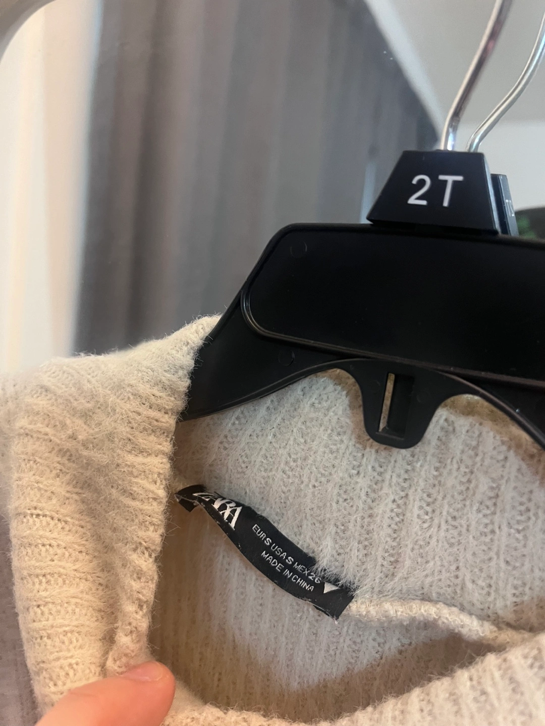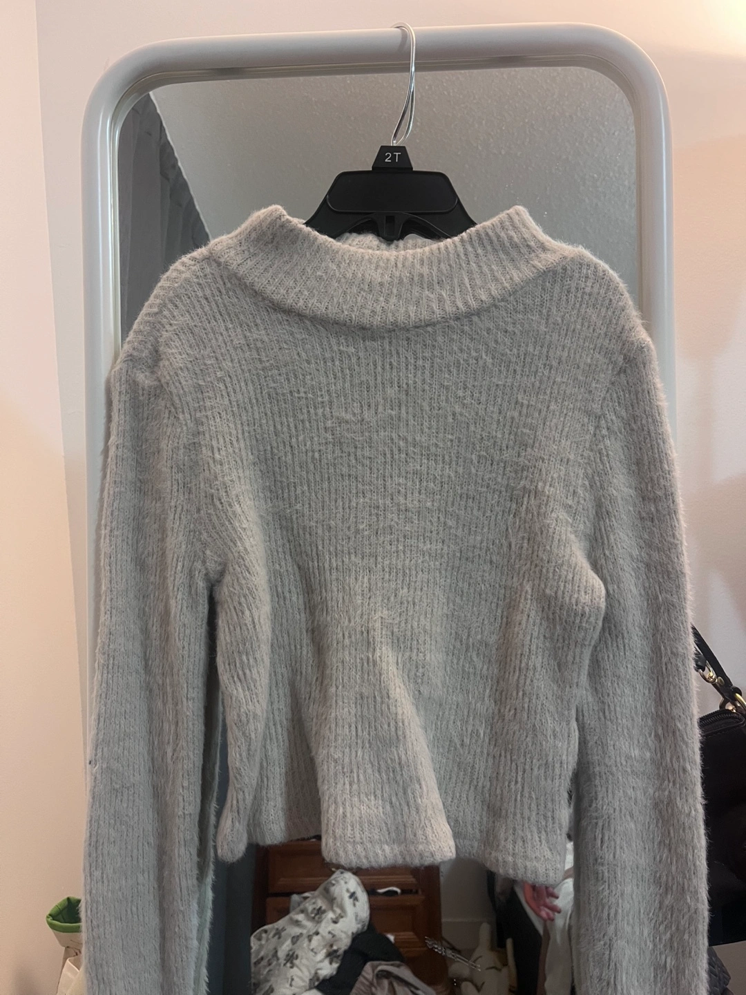 cropped sweater. Fuzzy texture. Long sleeves. Mock neck. Perfect for layering or wearing alone.