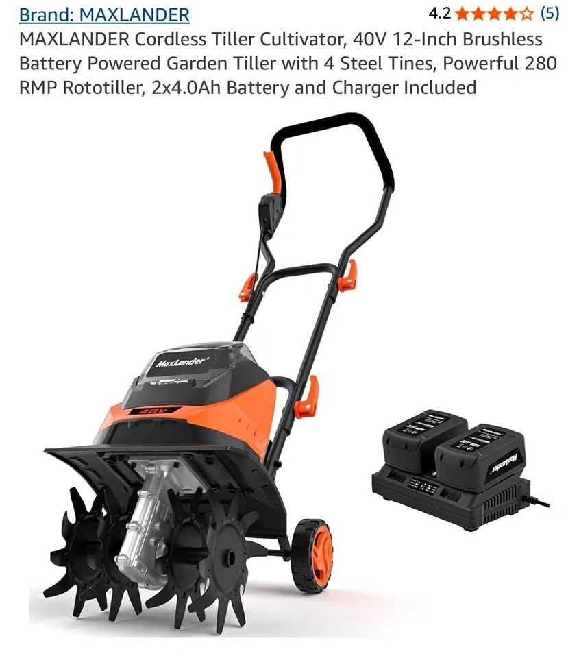 New Maxlander 40V Cordless Tiller w/ 2 Batteries & Charger
