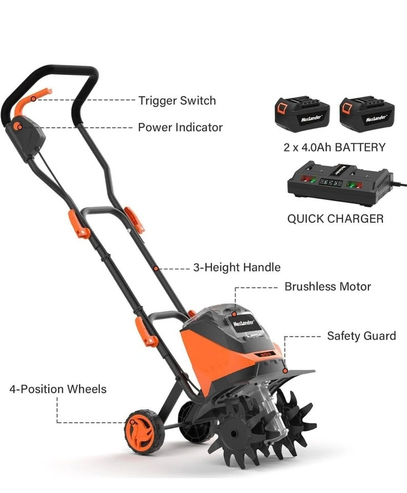 New Maxlander 40V Cordless Tiller w/ 2 Batteries & Charger