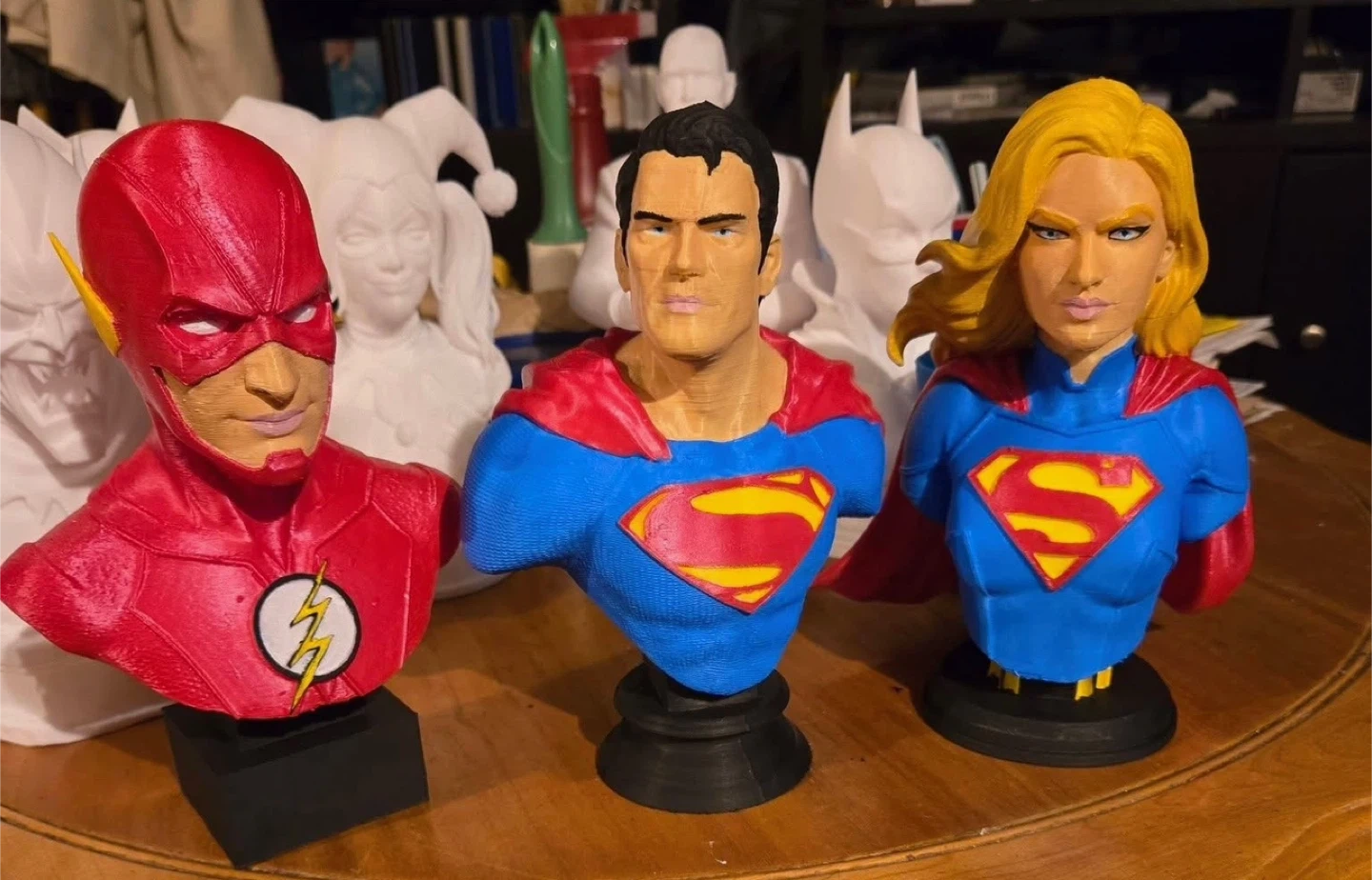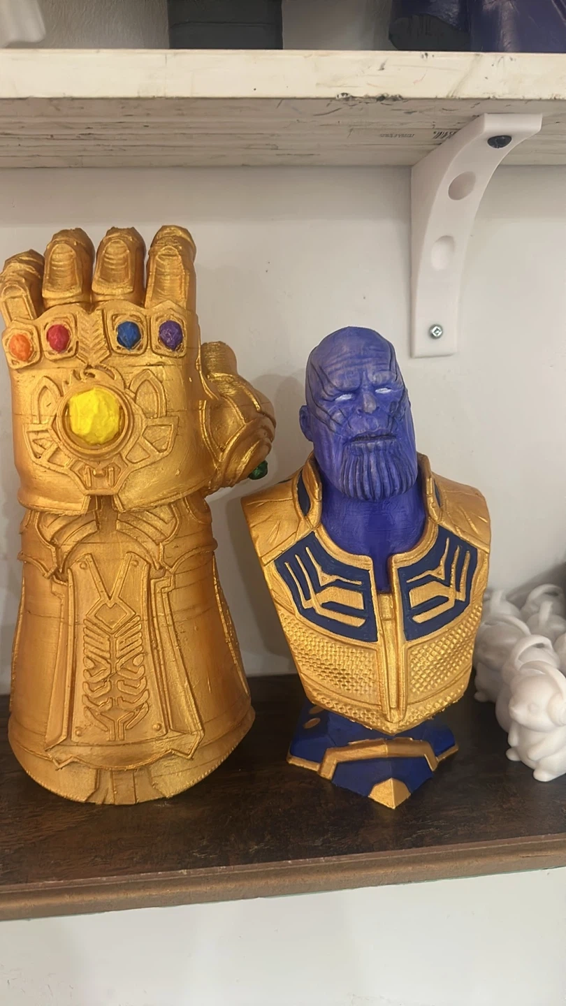 $75 Each ….painted 3D printed busts featuring Marvel characters like Thanos, Thor, Iron Man, and DC characters such as Superman, Captain America, Wonder Woman, Green Lantern, The Flash, and Supergirl. Also a gold-painted Infinity Gauntlet replica. Great for any comic book fan's display! Let me know which one you would like!!