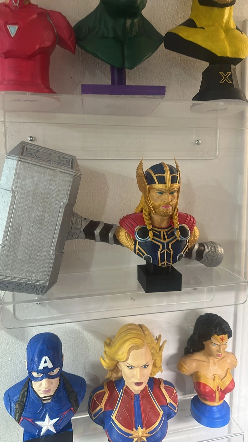 $75 Each ….painted 3D printed busts featuring Marvel characters like Thanos, Thor, Iron Man, and DC characters such as Superman, Captain America, Wonder Woman, Green Lantern, The Flash, and Supergirl. Also a gold-painted Infinity Gauntlet replica. Great for any comic book fan's display! Let me know which one you would like!!