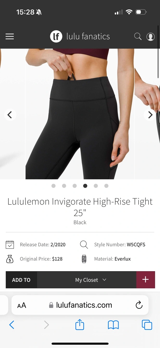 Black Lululemon Invigorate High-Rise Tight 25". Features pockets. Excellent condition. Worn once a bit small for me