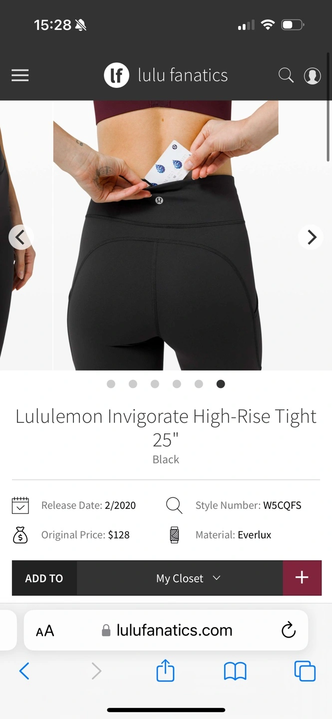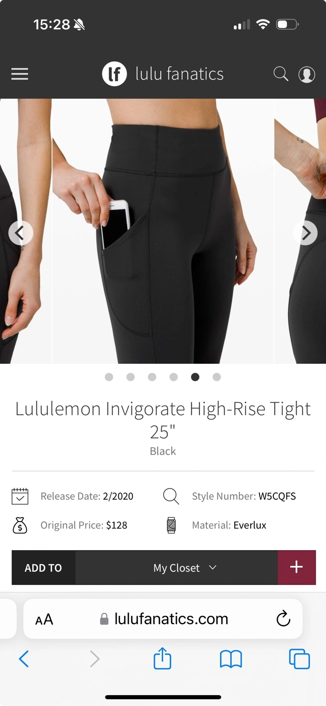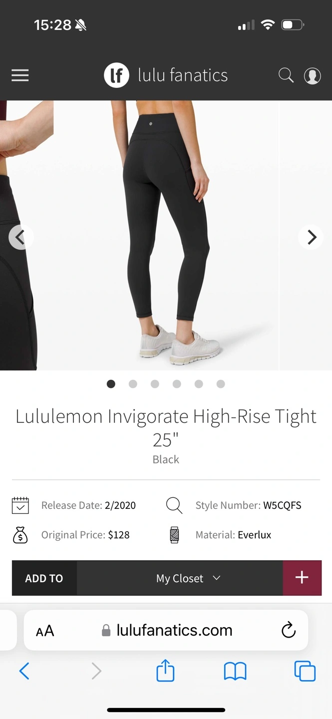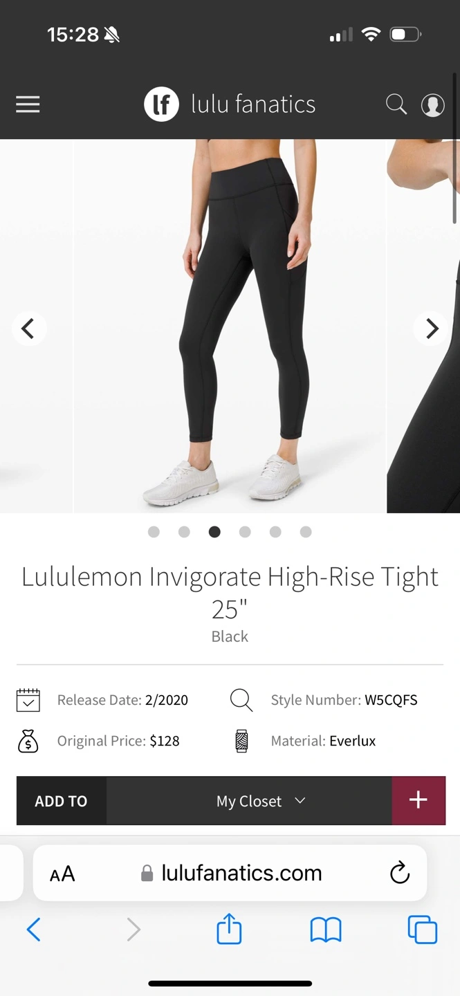 Black Lululemon Invigorate High-Rise Tight 25". Features pockets. Excellent condition. Worn once a bit small for me