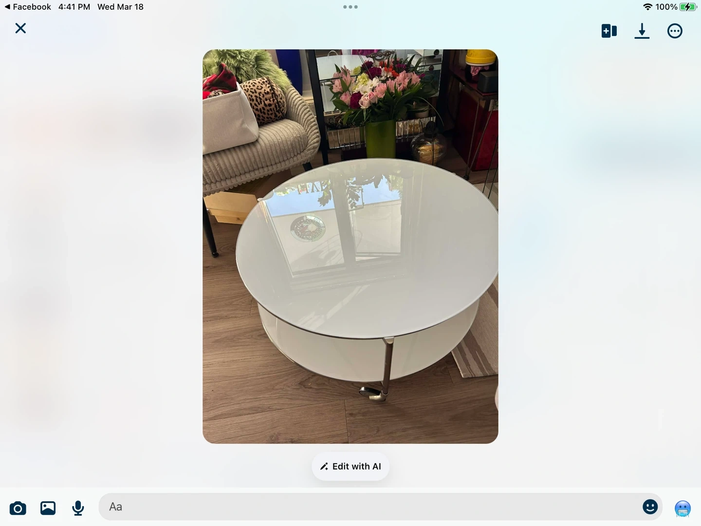 Round Coffee Table with Glass Top and White Shelf