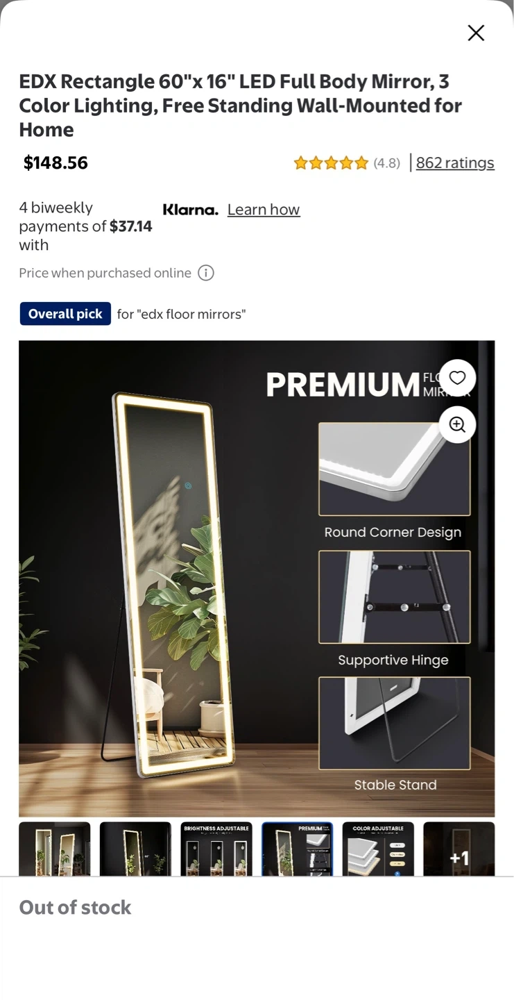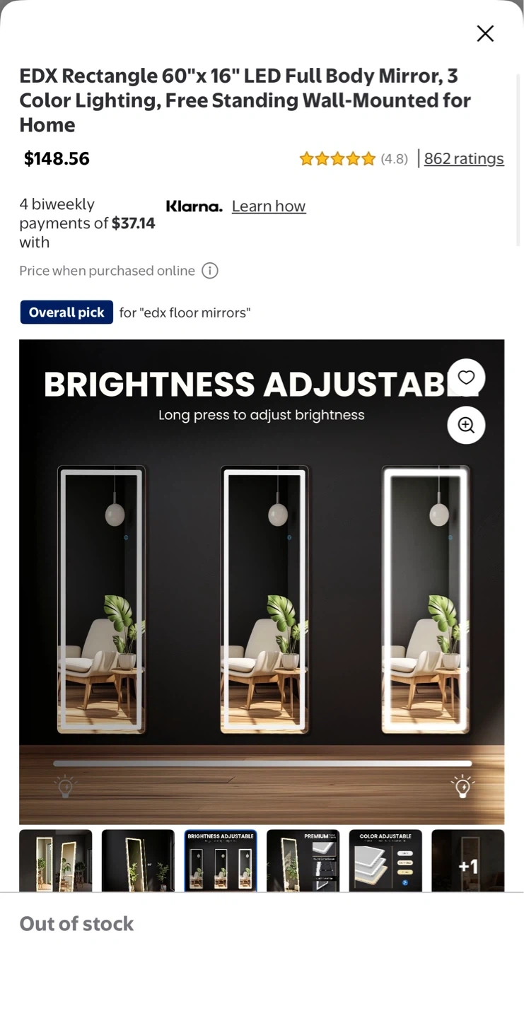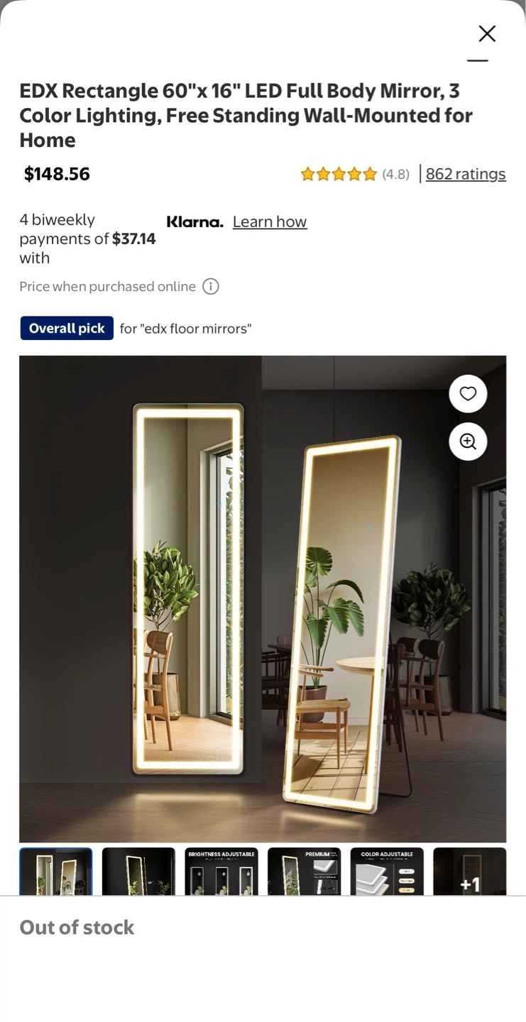 This full body mirror features a 60"x 16" rectangular design with LED lighting. The brightness is adjustable, and you can switch between white, warm white, and yellow light colours. It's designed for free standing or wall mounting. Perfect for checking your outfit from head to toe!