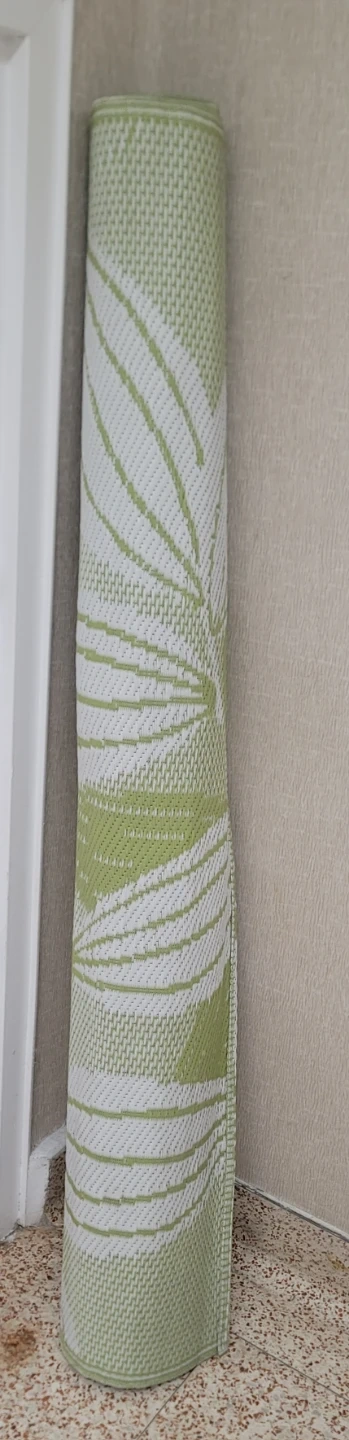 This area rug features a fresh green and white leaf pattern. It's made from durable, easy-to-clean material. This rug is perfect for adding a touch of nature to any room!