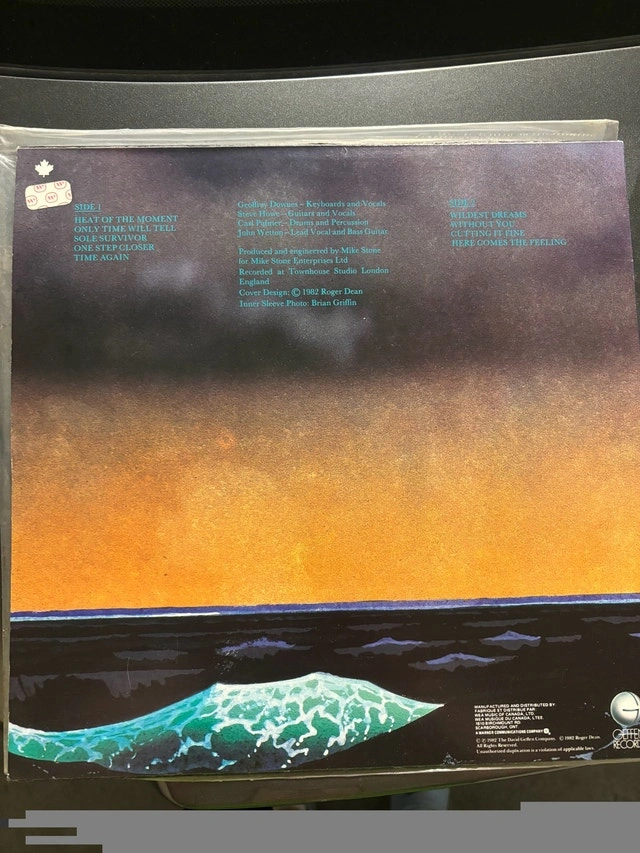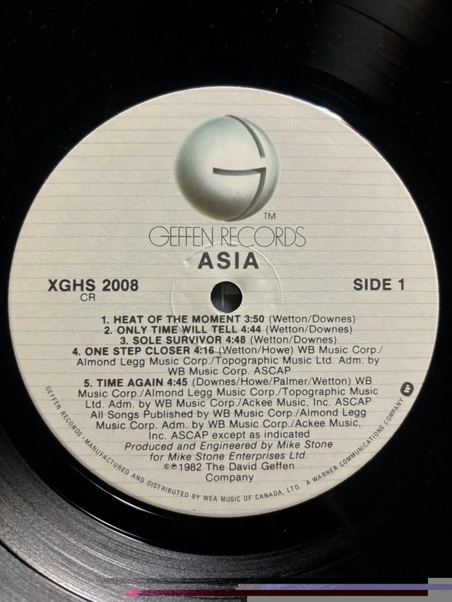 Original pressing of Asia's self-titled album on vinyl. No scratches, in mint condition. Geffen Records – 902 008-1. Released in 1986. Features Roger Dean cover art. Includes original inner sleeve with photo. Performed by John Wetton, Carl Palmer, Steve Howe, and Geoff Downes. Produced by Mike Stone. This is a used item, but it's in like-new condition. Cash only.