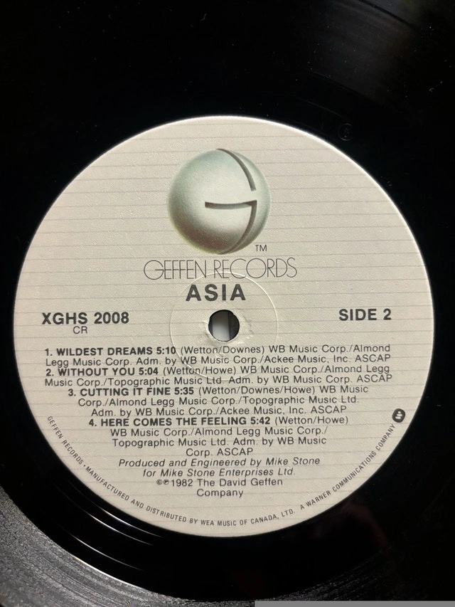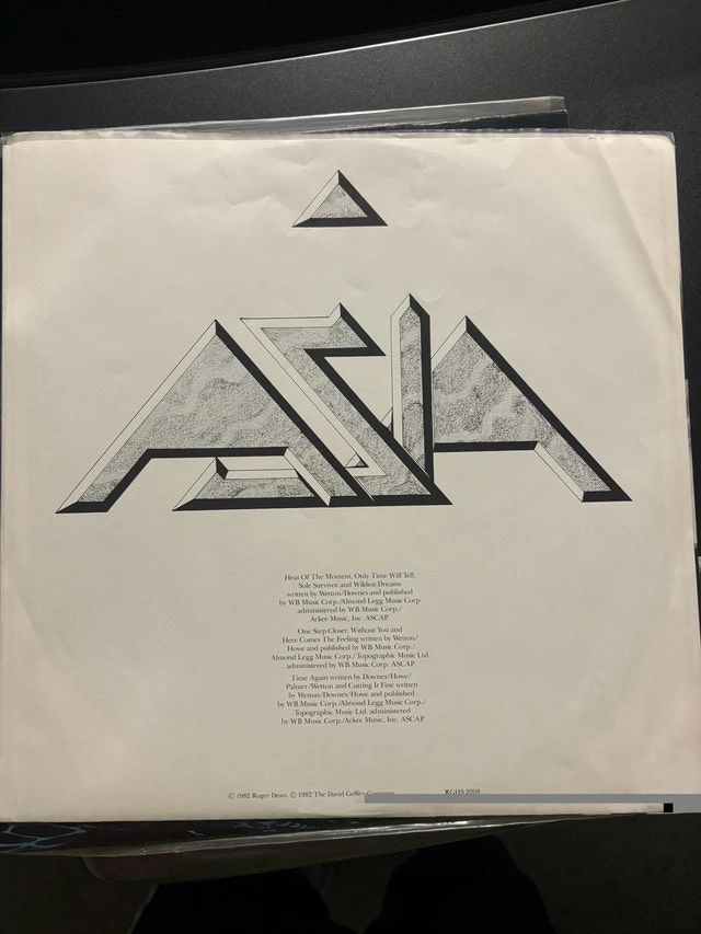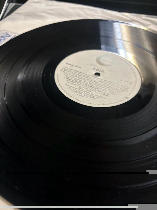 Original pressing of Asia's self-titled album on vinyl. No scratches, in mint condition. Geffen Records – 902 008-1. Released in 1986. Features Roger Dean cover art. Includes original inner sleeve with photo. Performed by John Wetton, Carl Palmer, Steve Howe, and Geoff Downes. Produced by Mike Stone. This is a used item, but it's in like-new condition. Cash only.