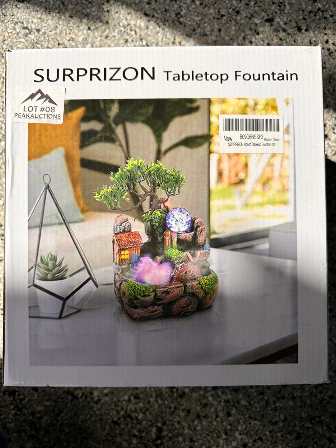 This is a SURPRIZON Tabletop Fountain with a decorative tree and rockery. It includes a water pump and an atomizer for mist effects. Add water and plug it in to enjoy a relaxing ambiance!