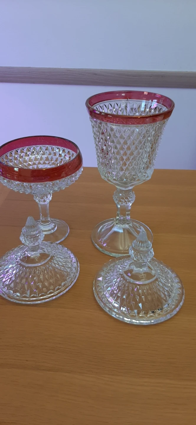 Indiana Glass Diamond Point Ruby lidded dishes