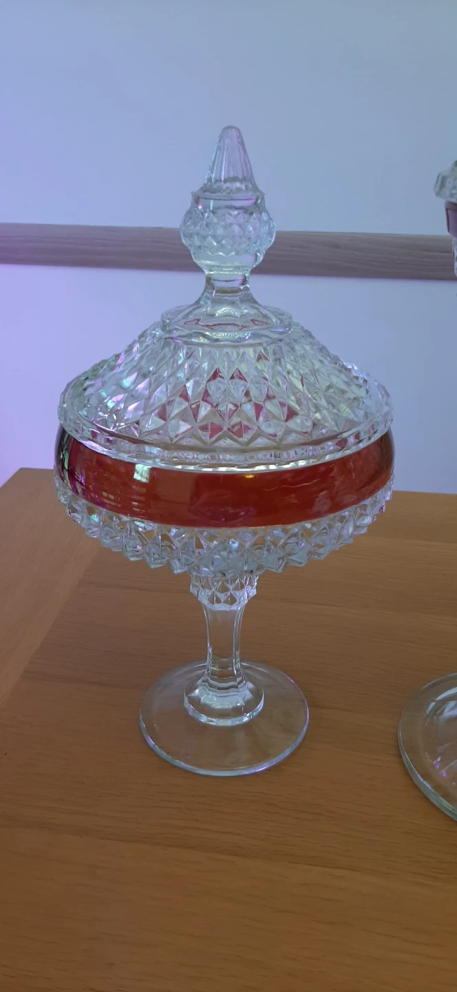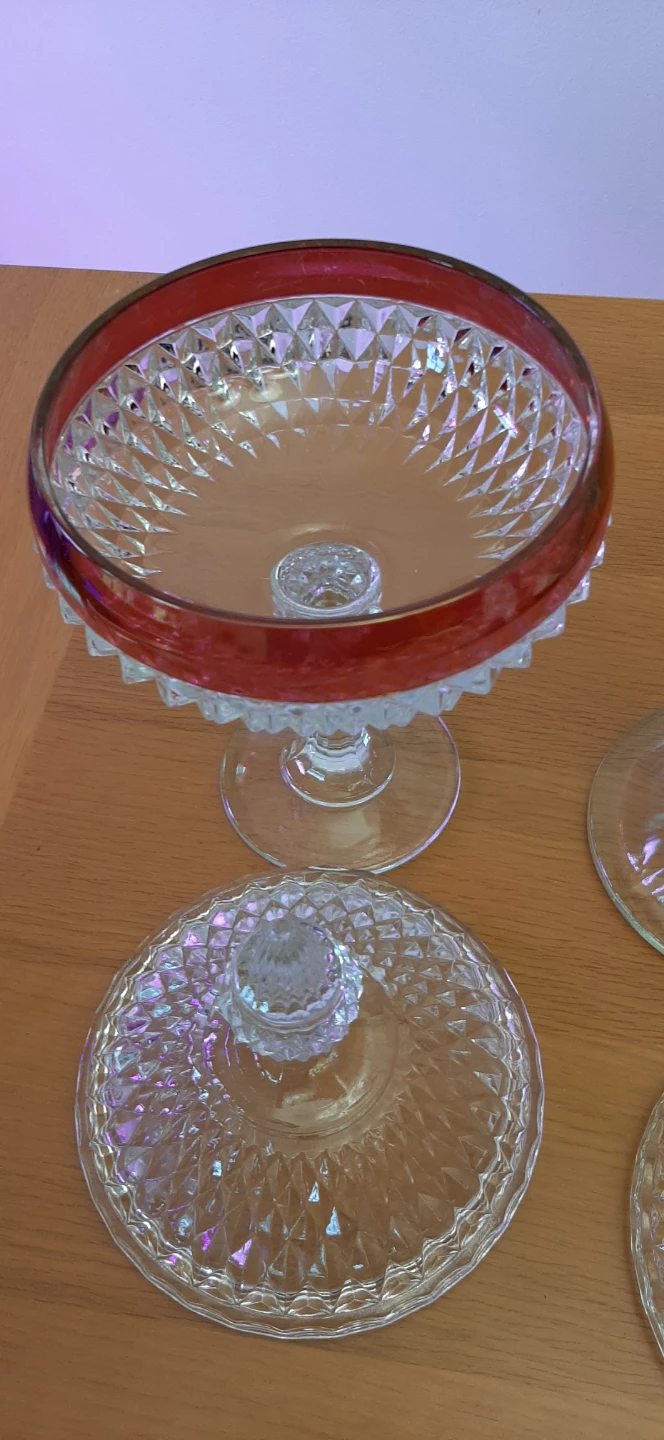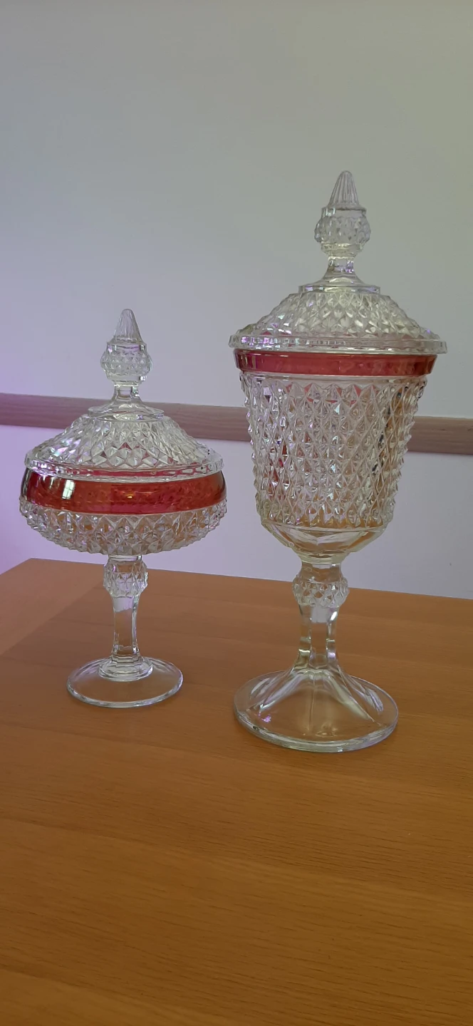 Indiana Glass Diamond Point Ruby lidded dishes