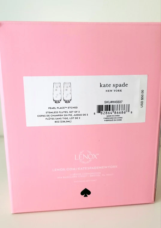 The Pearl Place flutes feature Kate Spade’s signature polka dot design permanently etched into the glass, creating a subtle frosted texture that won’t fade or peel.