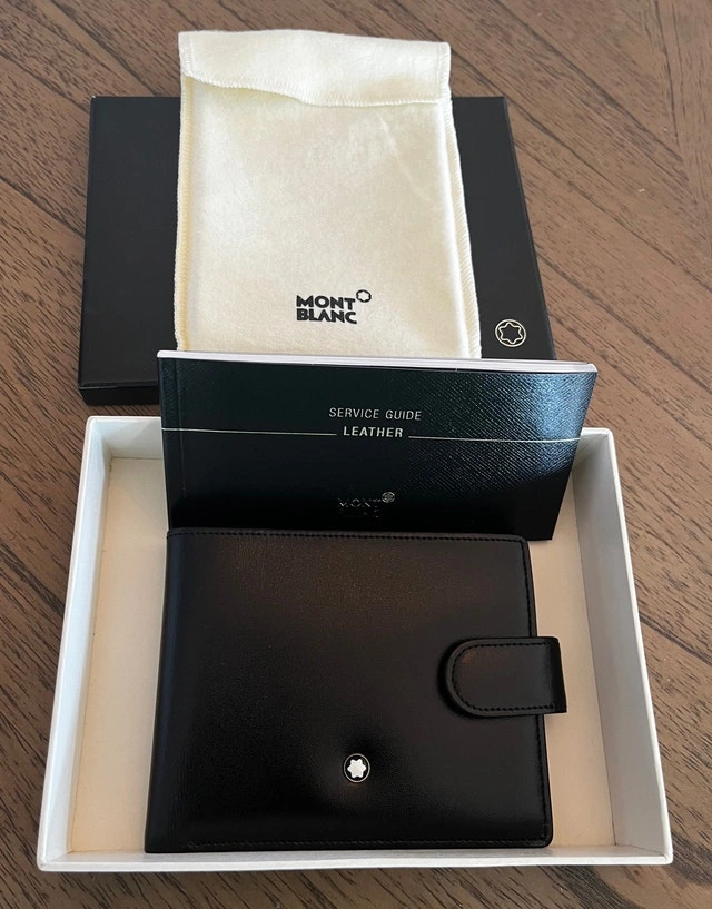 This is a brand new Montblanc wallet in its original packaging, perfect for keeping your cards and cash organized with a touch of luxury. It features premium leather and the iconic Montblanc emblem. It makes for a wonderful gift. Full grain leather, Jacquard lining with Montblanc brand name, Montblanc emblem with palladium-coated ring, 6 pockets for credit cards, 2 compartments for cash. Treat yourself or a loved one to this lovely Montblanc wallet. If the ad is up, it's still available!