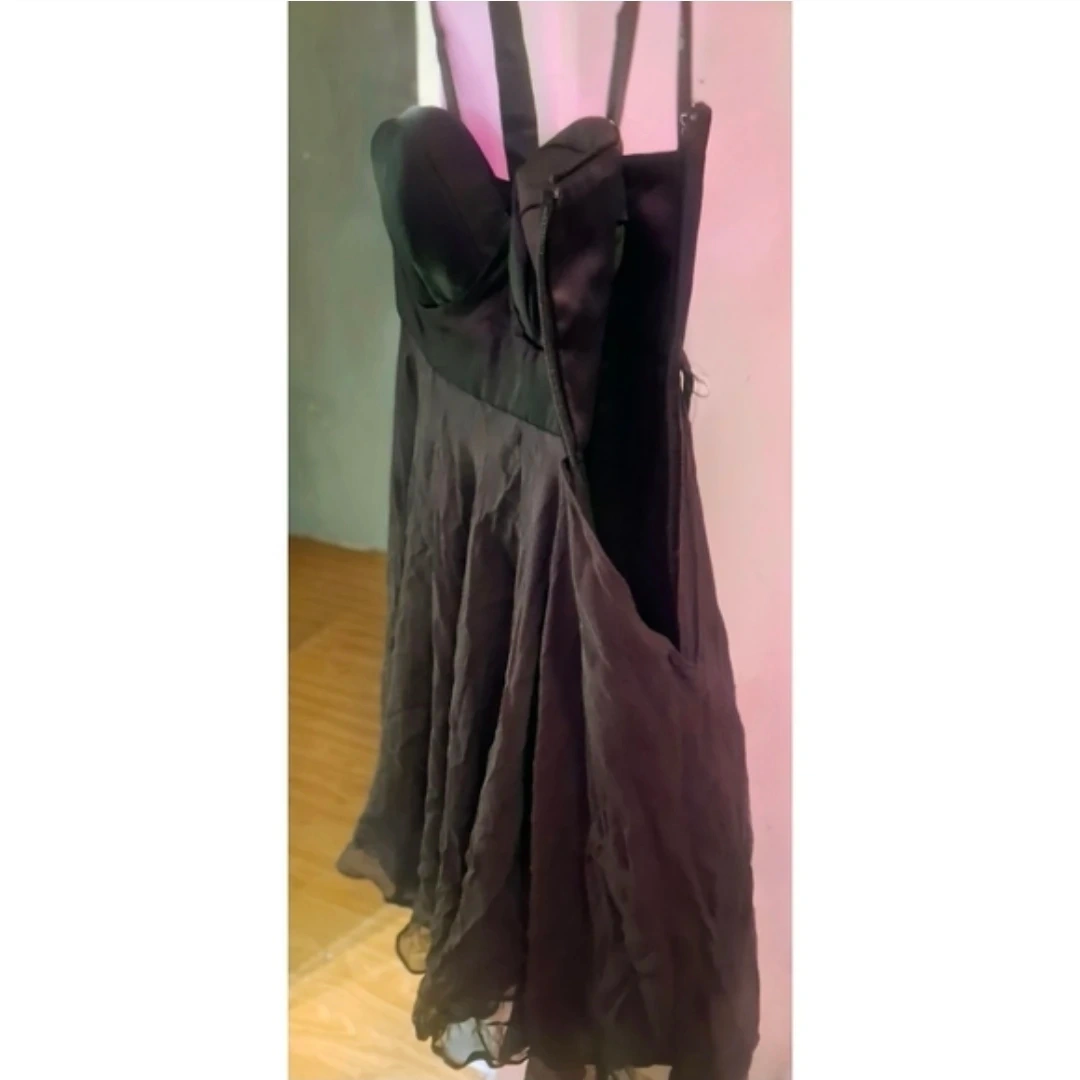 This is a NWOT vintage Silk, Polyester & Spandex Dress made by the brand BeBe from Y2K. You won't find this dress in their stores anymore! It's so Unique you'll have people's heads turning. With a sweetheart/bustier neck line and a beautiful silk , bottom that flows effortlessly as you move. The skirt is above the knee and it has a beautiful silk string that you can tie like a bow around your waist and add a Holter top silk ribbon around your neck.