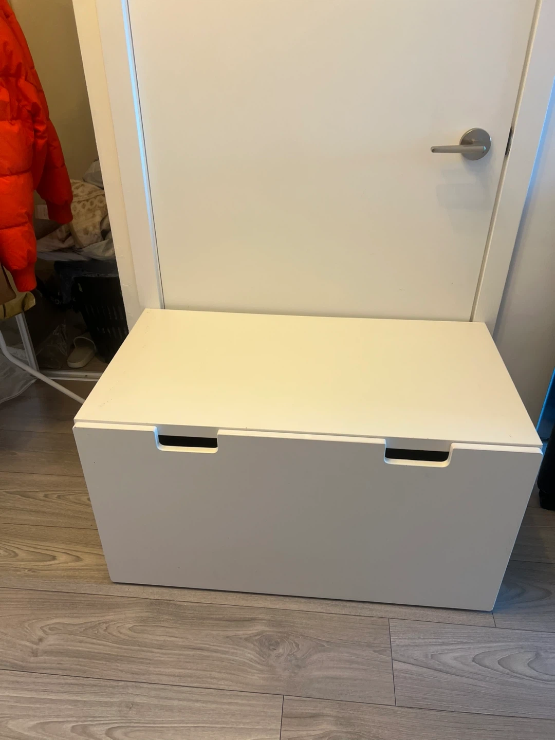 Selling a white bench with storage. It's in good condition and perfect for keeping things organised while providing ample space to sit on it.