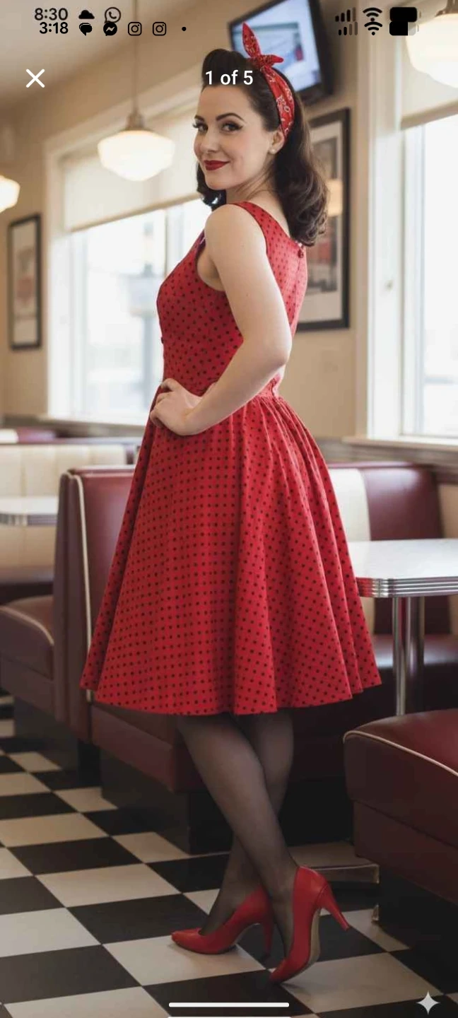 Pin Up Red Polka Dot Dress Size 8 Uk 12 Hearts And Roses Medium Large