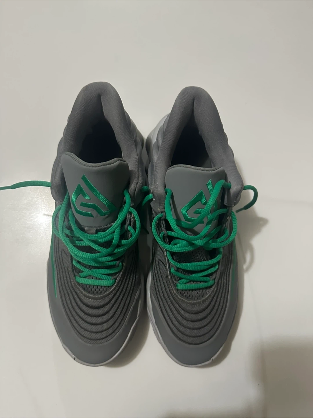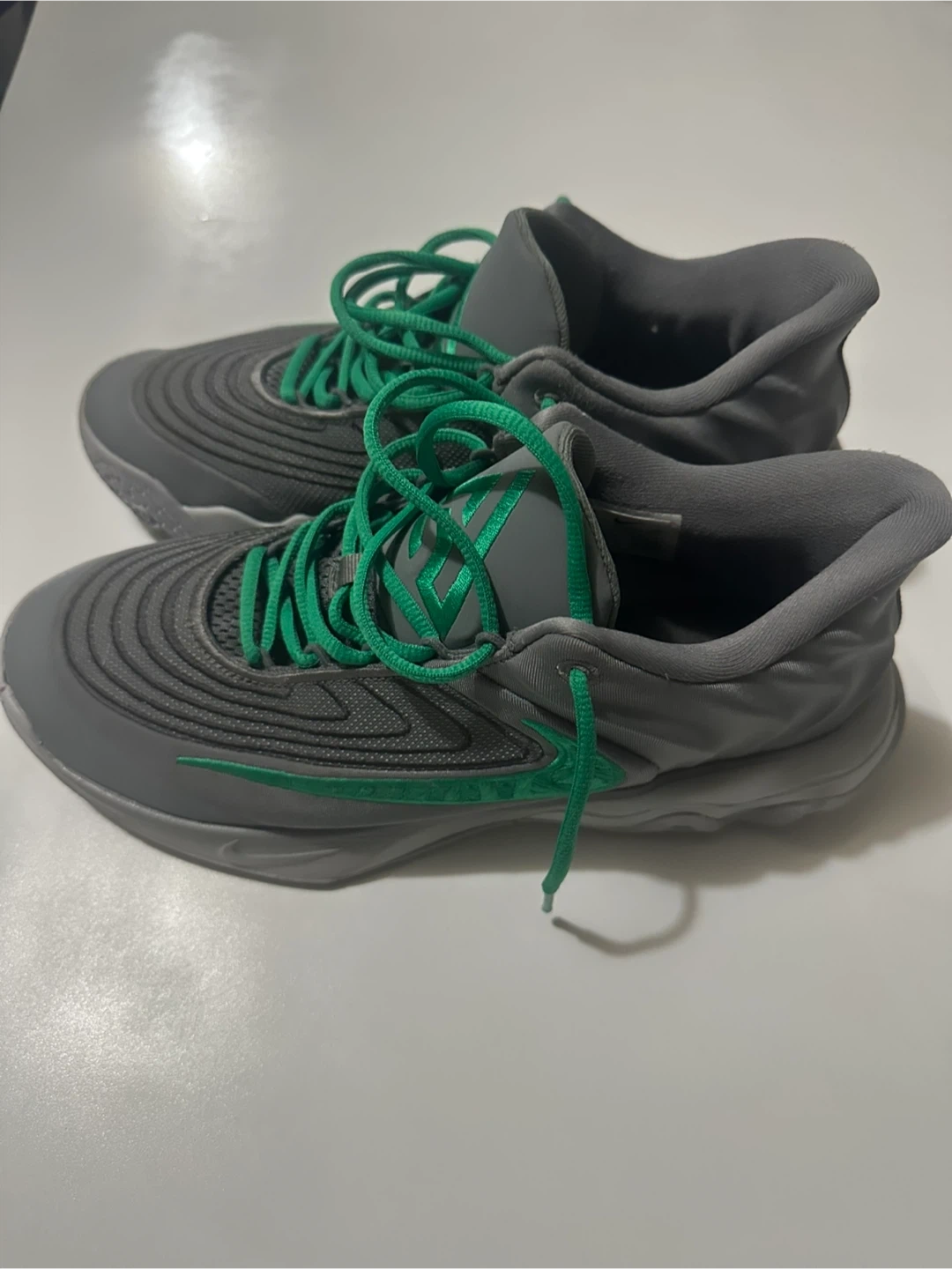 These Nike Giannis Immortality basketball shoes come in a sleek grey and green colourway. They feature a durable construction suitable for the court. Great for anyone looking for reliable basketball footwear! Size 9