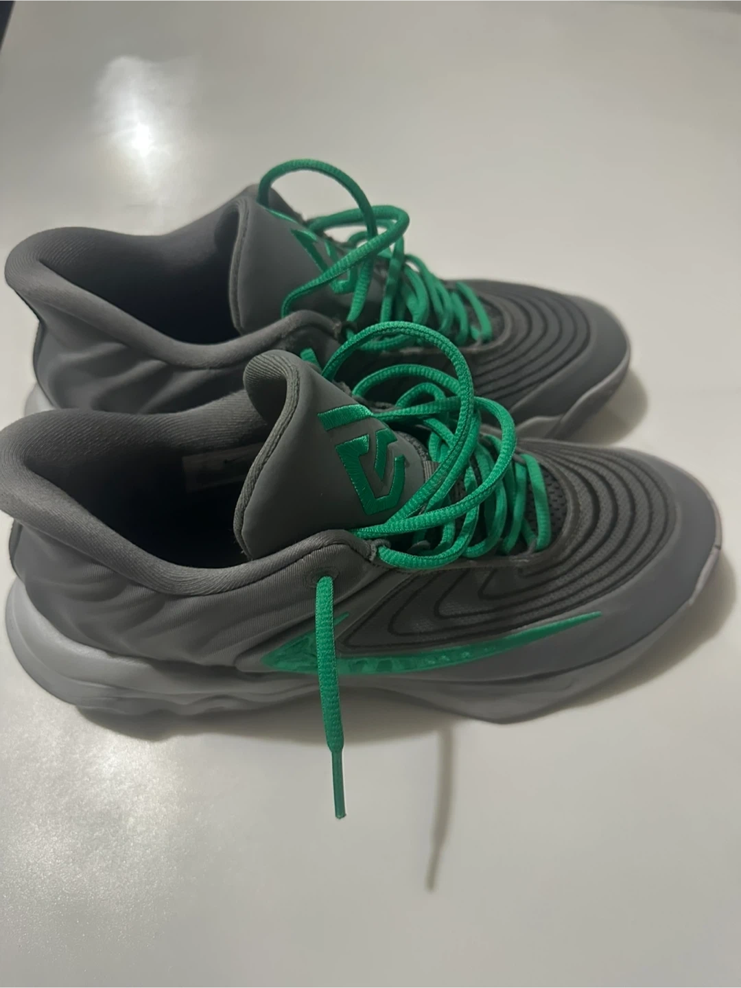 These Nike Giannis Immortality basketball shoes come in a sleek grey and green colourway. They feature a durable construction suitable for the court. Great for anyone looking for reliable basketball footwear! Size 9