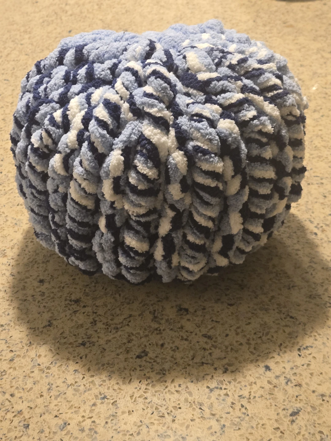 Mini handknit pillow pouf, good for a cute accent pillow! Cozy fluffy blue yarn. Selling for $5, pickup only.