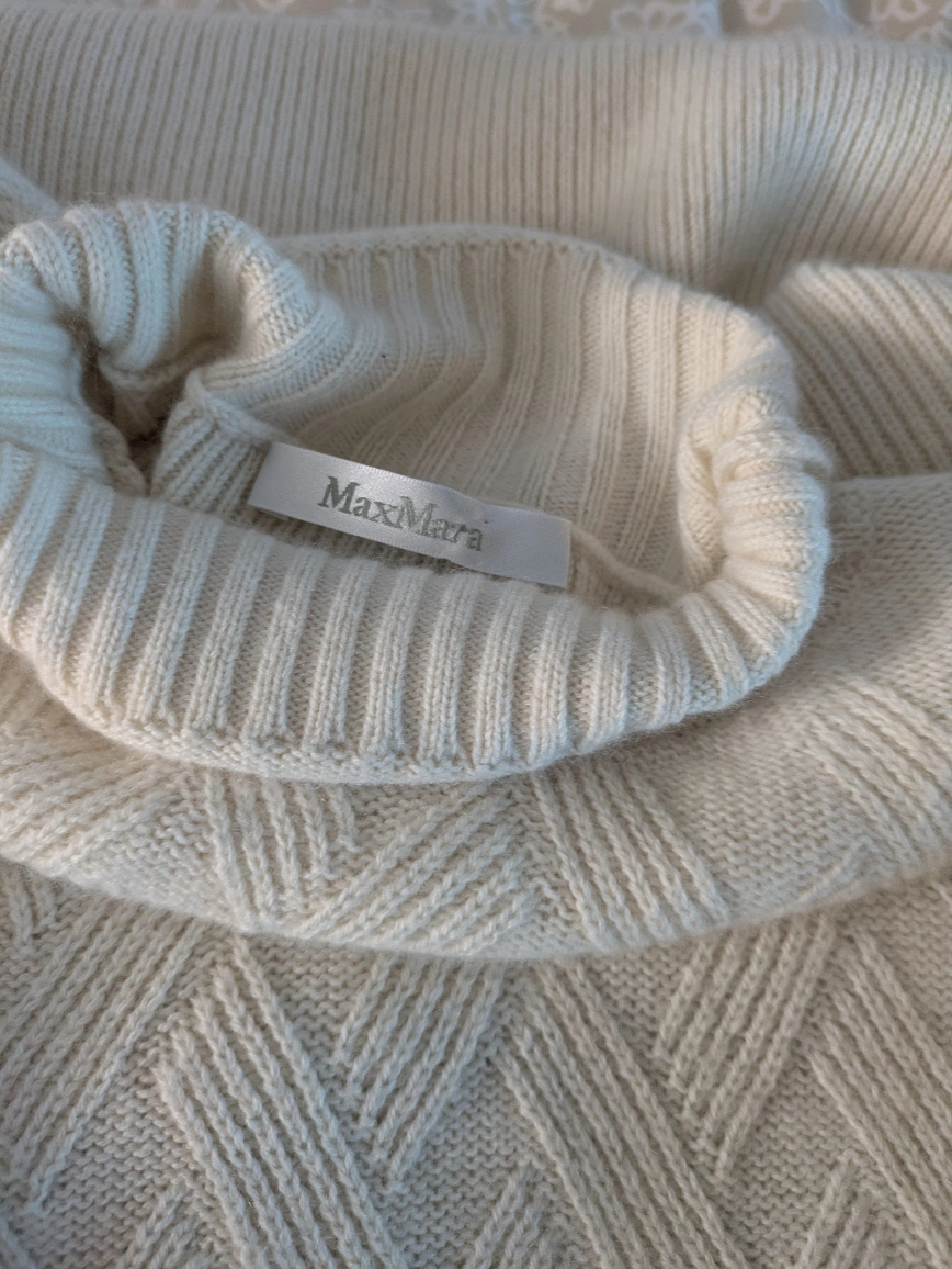 Cozy up in this luxurious beautiful designer Max Mara sweater! It's made of 100% cashmere and is a size L. The cream colour is perfect for any outfit. It's in great condition and ready for a new home!