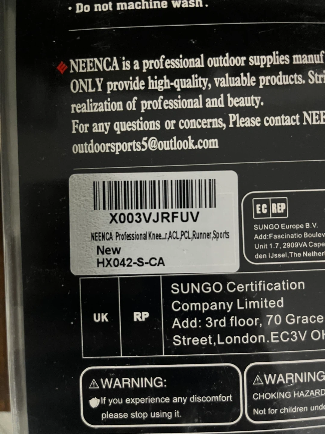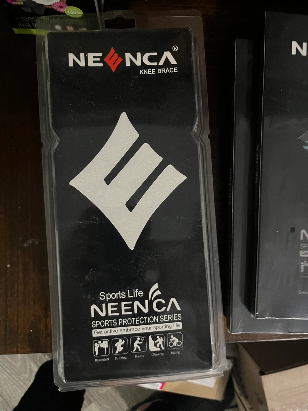 Selling a brand new NEENCA knee brace! It's never been used and comes in its original packaging. This is a size XL. It's part of the Sports Protection Series and designed to support activities like basketball, running, tennis, climbing, and biking. It features a design patent and provides professional support. The fiber content is 50% SBR, 20% Nylon, 10% Spandex, and 20% Polyester. The support rod is made of steel, and the patella pad is TPE. Hand washing instructions are included on the packaging