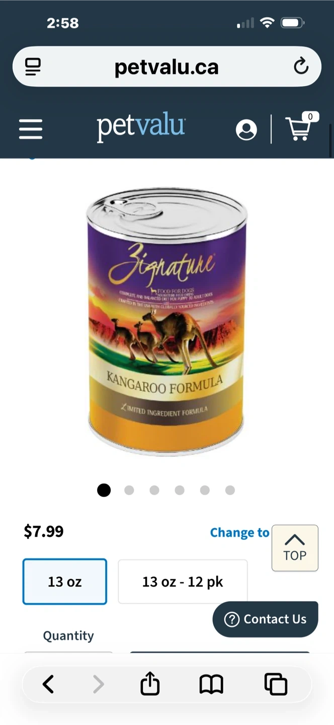 Zignature Kangaroo Formula Limited Ingredient Dog Food is made with high-quality Kangaroo to give your pup a true taste of the outback! This delicious wet food formula contains at least 78% moisture, is made with nutrient rich Kangaroo as the first ingredient, and includes wholesome ingredients like peas and chickpeas to round out a well-balanced diet.