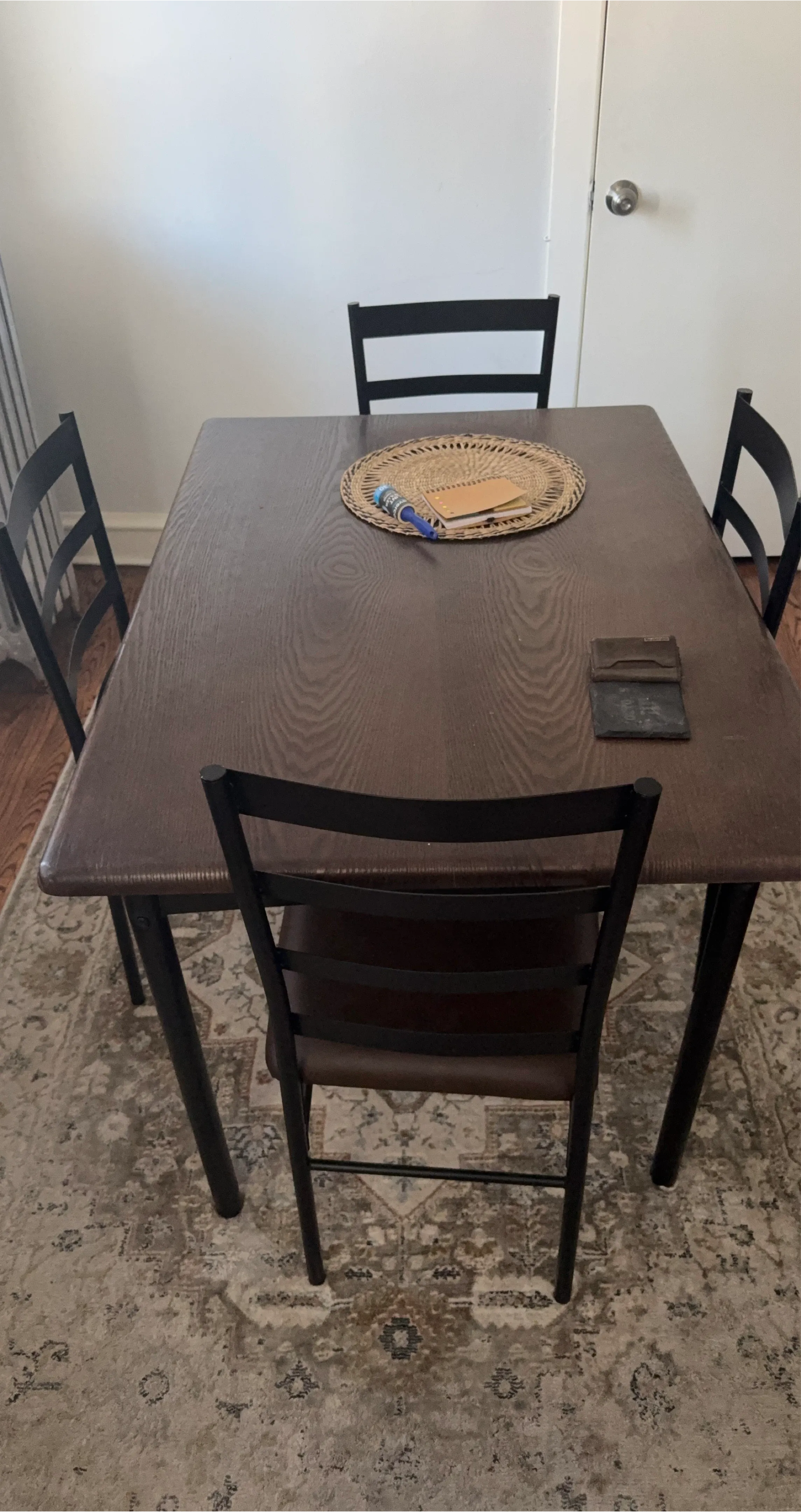 Dark Wood Dining Table with 4 Black Chairs