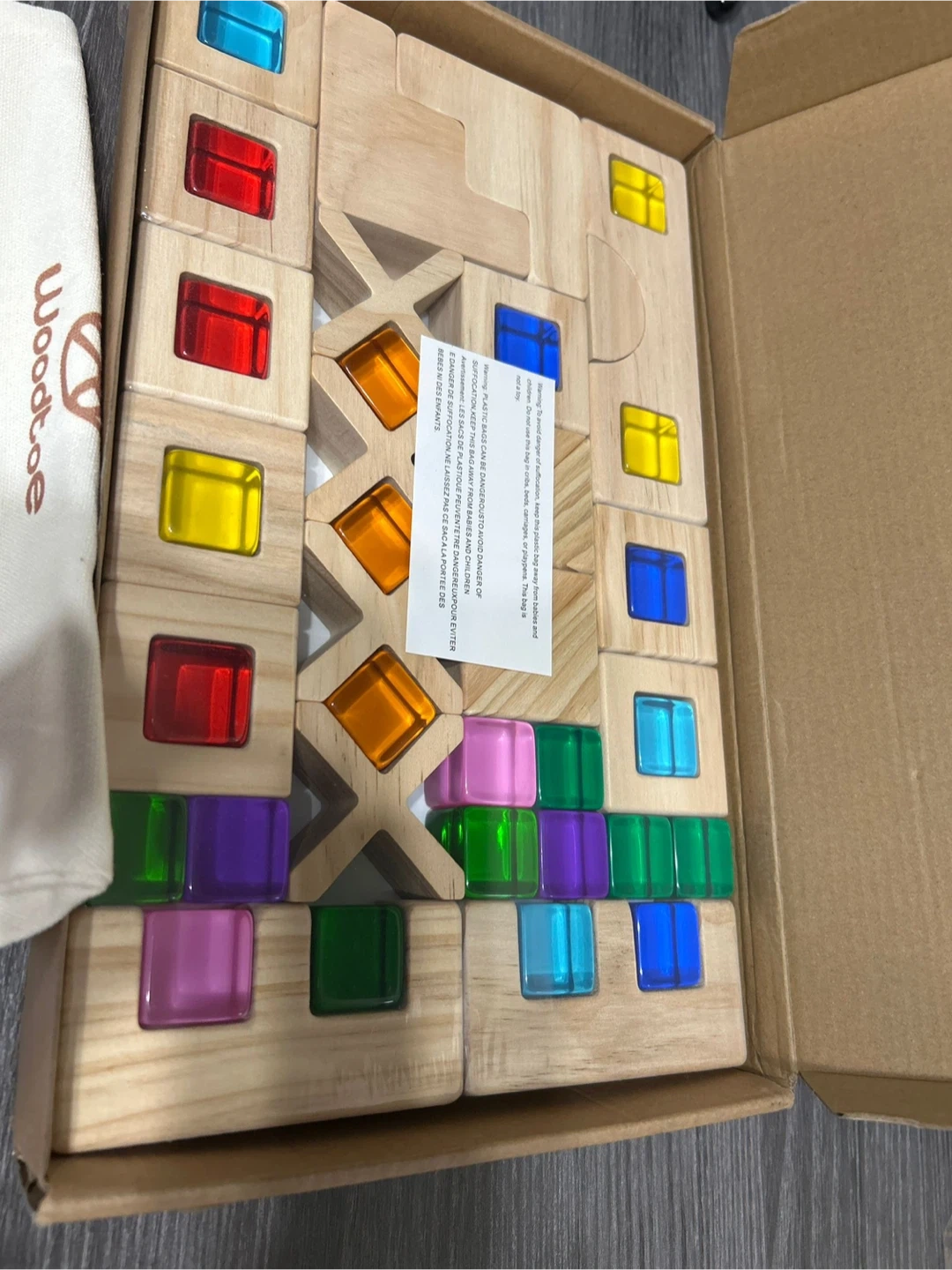 This new set includes wooden building blocks featuring colourful translucent gemstones. It comes with a storage bag for easy cleanup. These blocks are great for imaginative play and building creations. Pick up at Islington /401 / bergamot avenue Etobicoke.