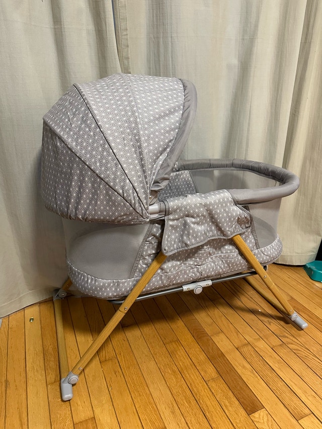 This item was barely used. My son tried it only twice, then we stored it away. Looking to give this lovely bassinet a new home! If the ad is up, it's still available, so no need to ask! Let's find a new little dreamer for this bassinet, shall we?