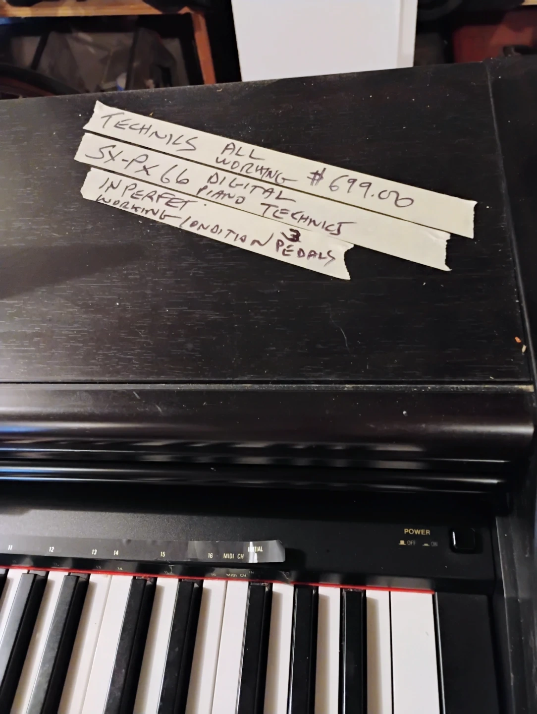 For sale vintage Technics digital keyboard with bench and all functions working! Model #SX-PX 66 ! Great condition! Three pedals and sheet music holder! $699.00! Please contact me thank you 😊