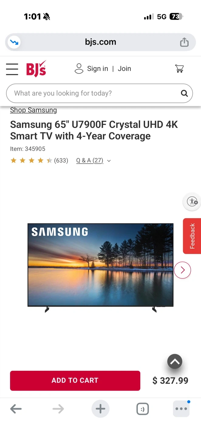 Selling a Samsung 65" U7900F Crystal UHD 4K Smart TV. Enjoy stunning picture quality and smart features! Originally priced at $499.99.