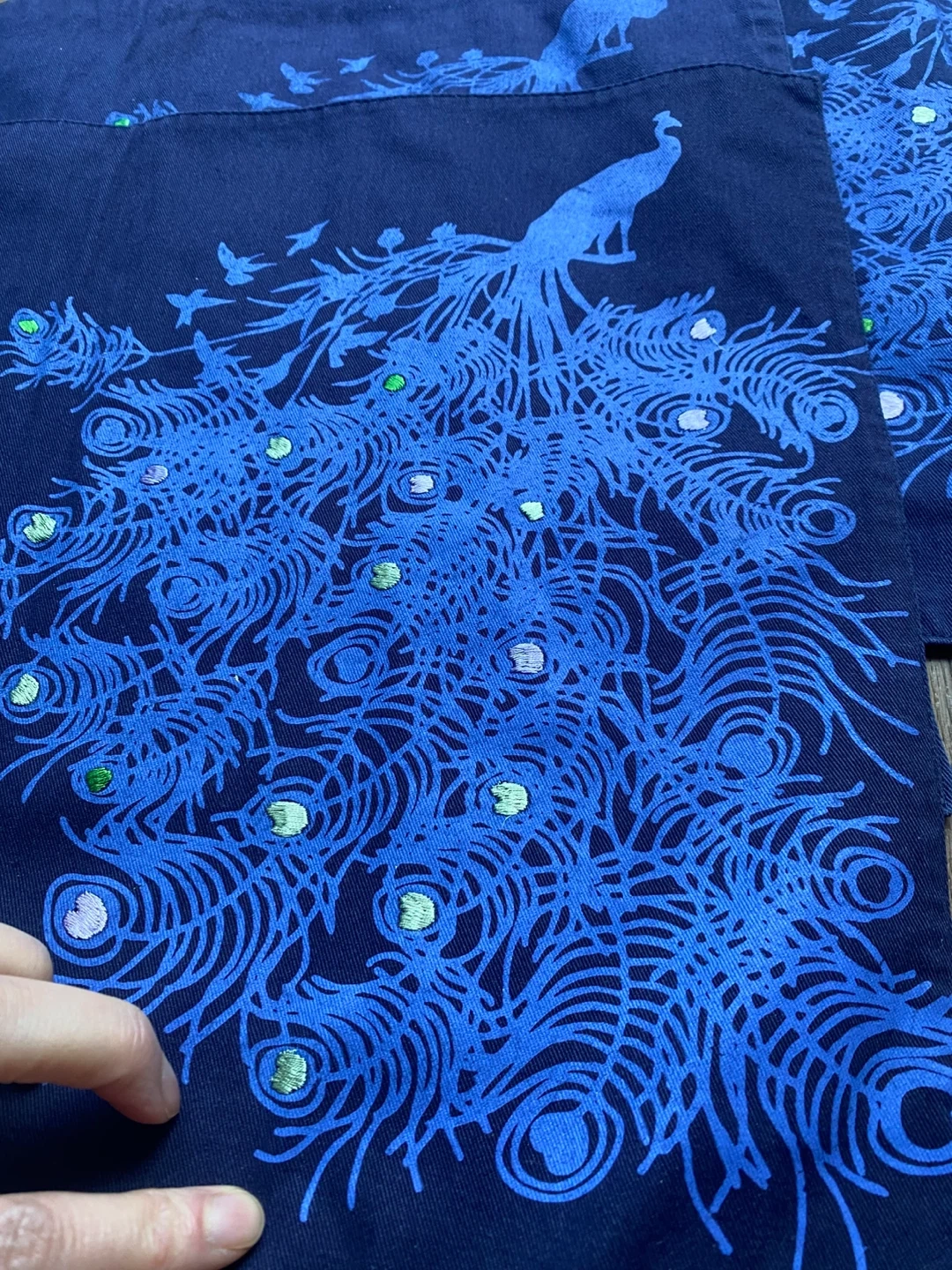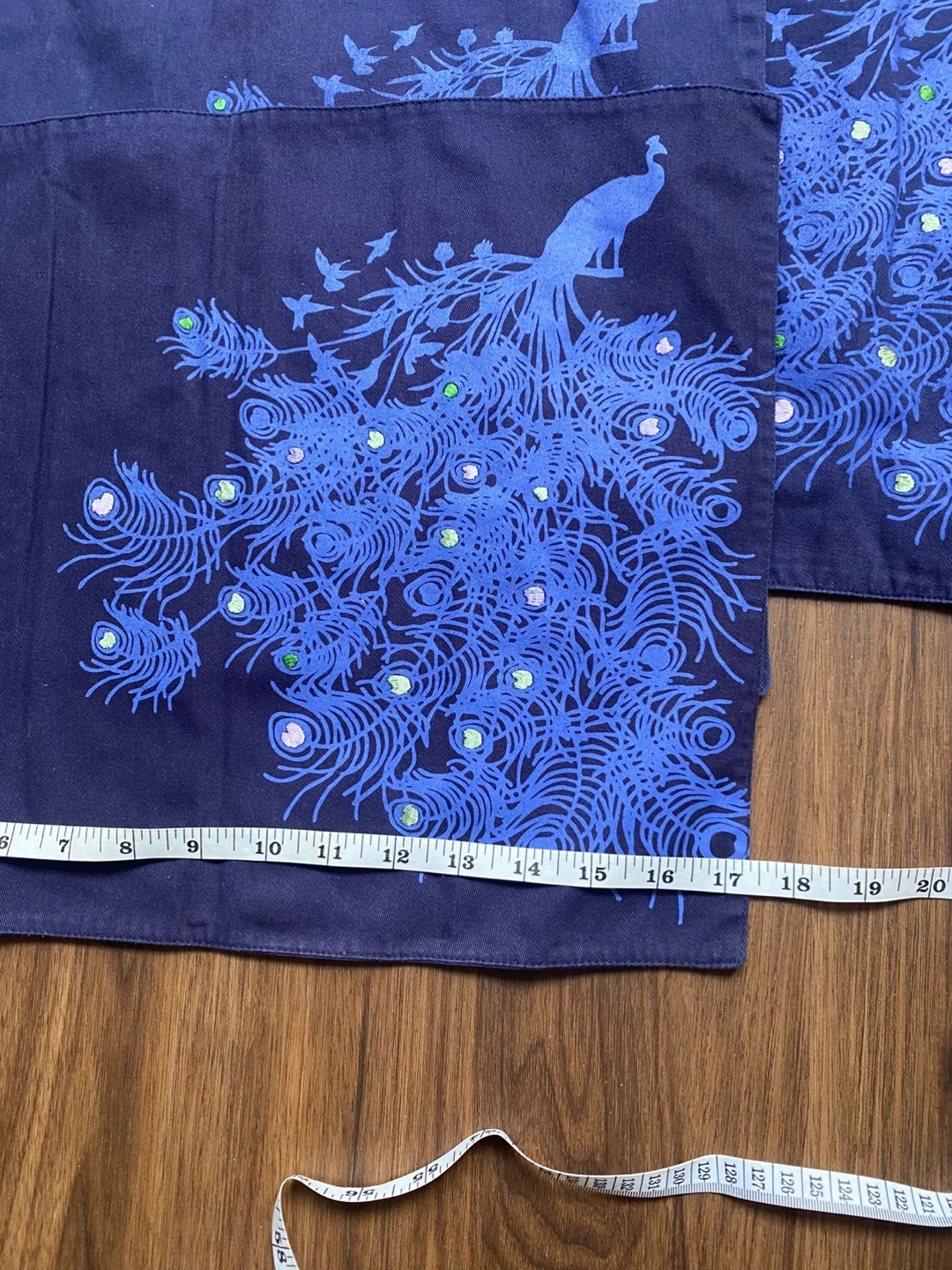 Here's a set of four fabric placemats featuring a beautiful peacock print! They are in great condition and ready to add a touch of elegance to your dining table. The placemats measure approximately 13x17 inches. Washed and stored.