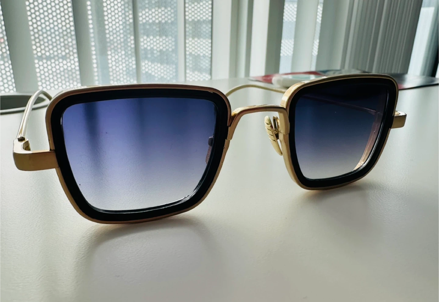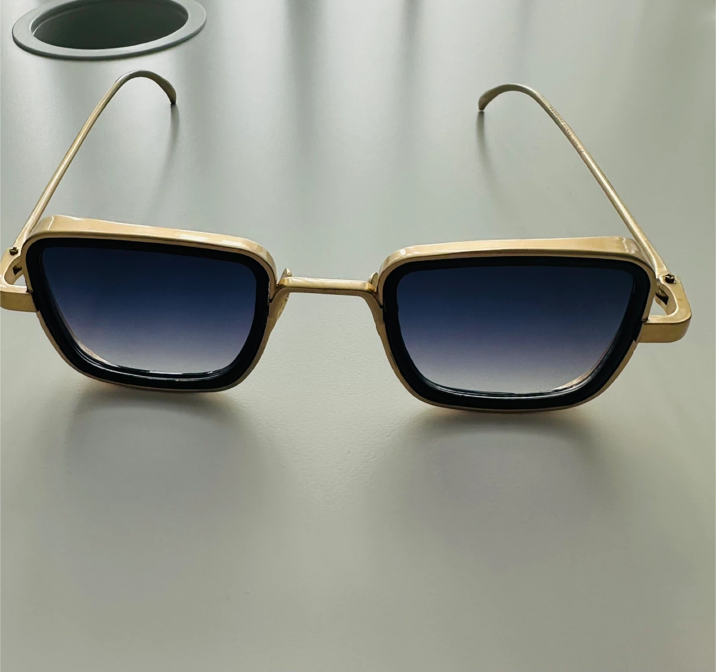 Stylish gold/brass square frame sunglasses with gradient lenses. These shades offer a modern look with a classic touch. The frames are gold-toned metal.