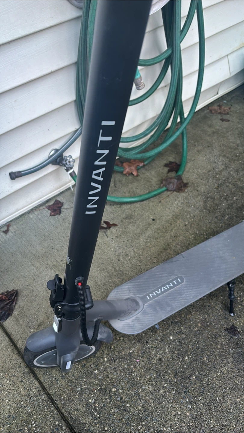 Invanti electric scooter for sale. It's black and grey with a kickstand. Perfect for getting around town! It goes 32 km an hour. I can clean it if you want.