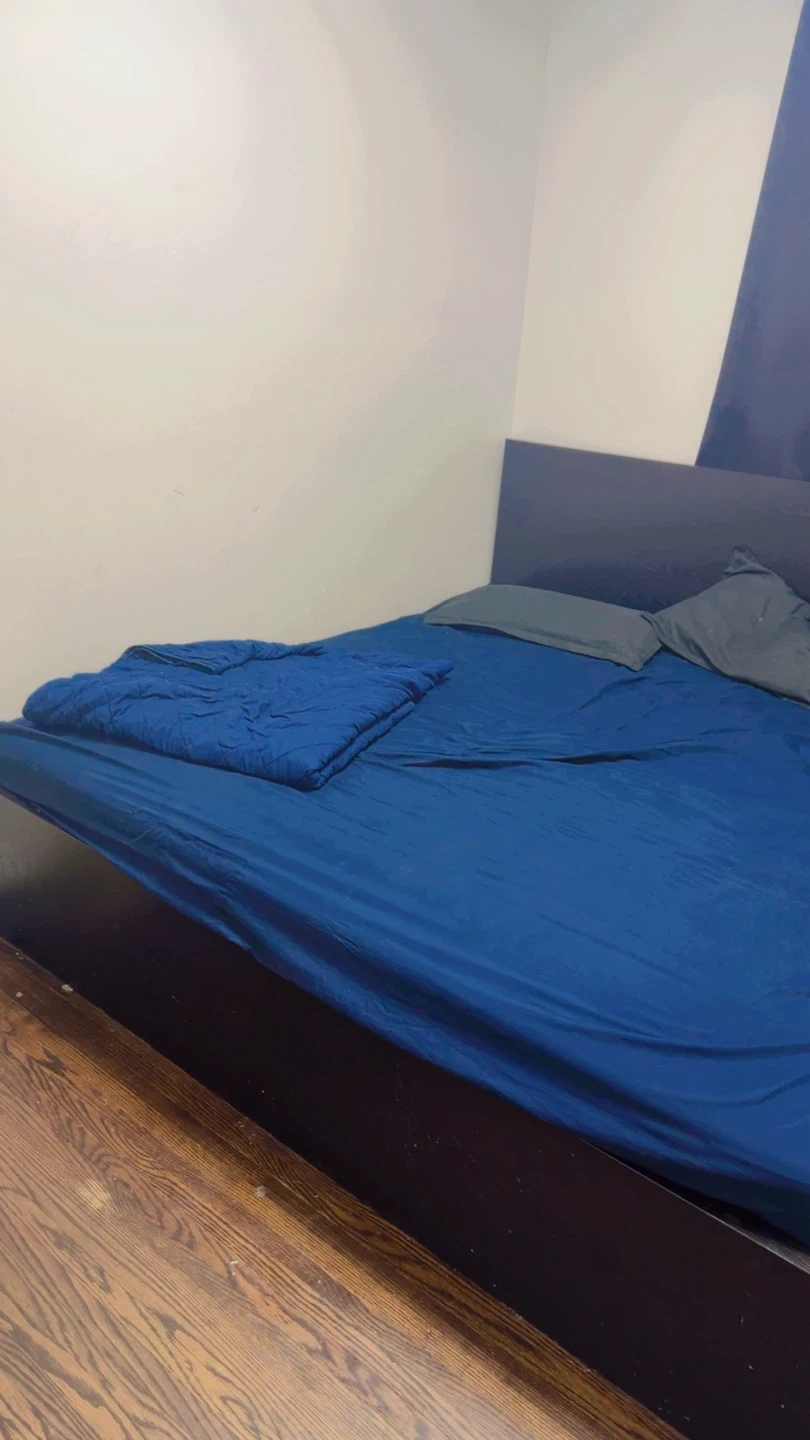 Selling a ikea king-size bed frame in dark brown. It's in good condition and ready for a new home. The bed frame has a simple and modern design, perfect for any bedroom. If you're looking for an affordable and stylish bed frame, this is it!