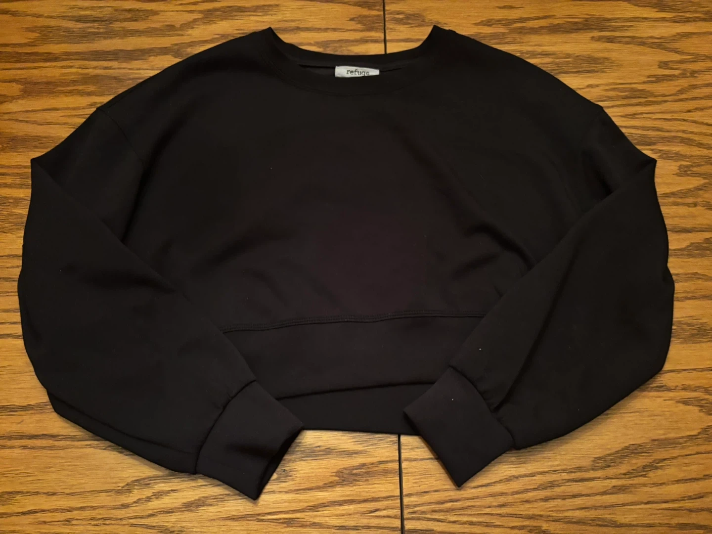 Black cropped sweatshirt from Refuge Athletics. It's a size small.