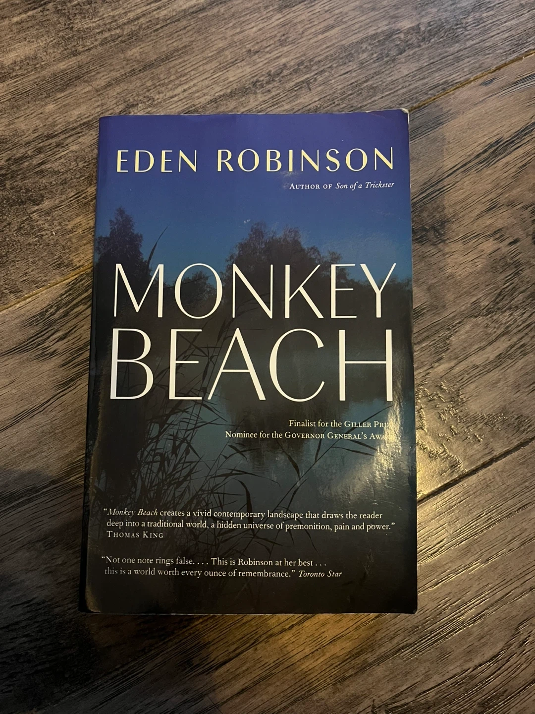 Monkey Beach by Eden Robinson. It's about a young woman's journey to find her brother. The book explores themes of family, culture, and spirituality. It was a finalist for the Giller Prize. It’s undamaged and a great read.