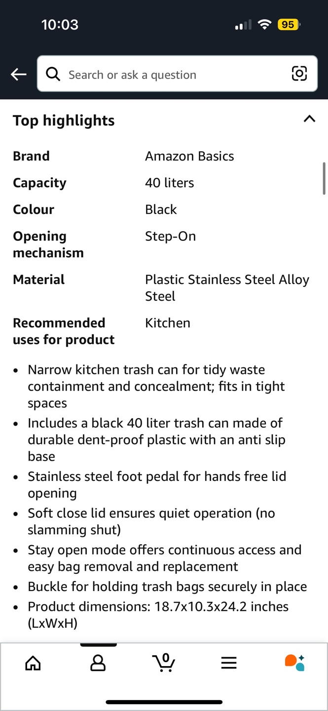 Buy & SellAmazon Basics 40L Step-On Trash Can - BlackAmazon Basics 40L Step-On Trash Can - Black$15Pick up today Sep 22 after 6pm or laterConditionLike newWHERE TO MEETCheck LocationView MapSELLERKassidyKillarney13013 reviews0 chats·0 favorites·12 viewsSEND CHAT TO SELLERHi Kassidy! I’m interested in your listing.Hi Kassidy! I’m interested in your listing.Get the Karrot app to chatSign In to chat