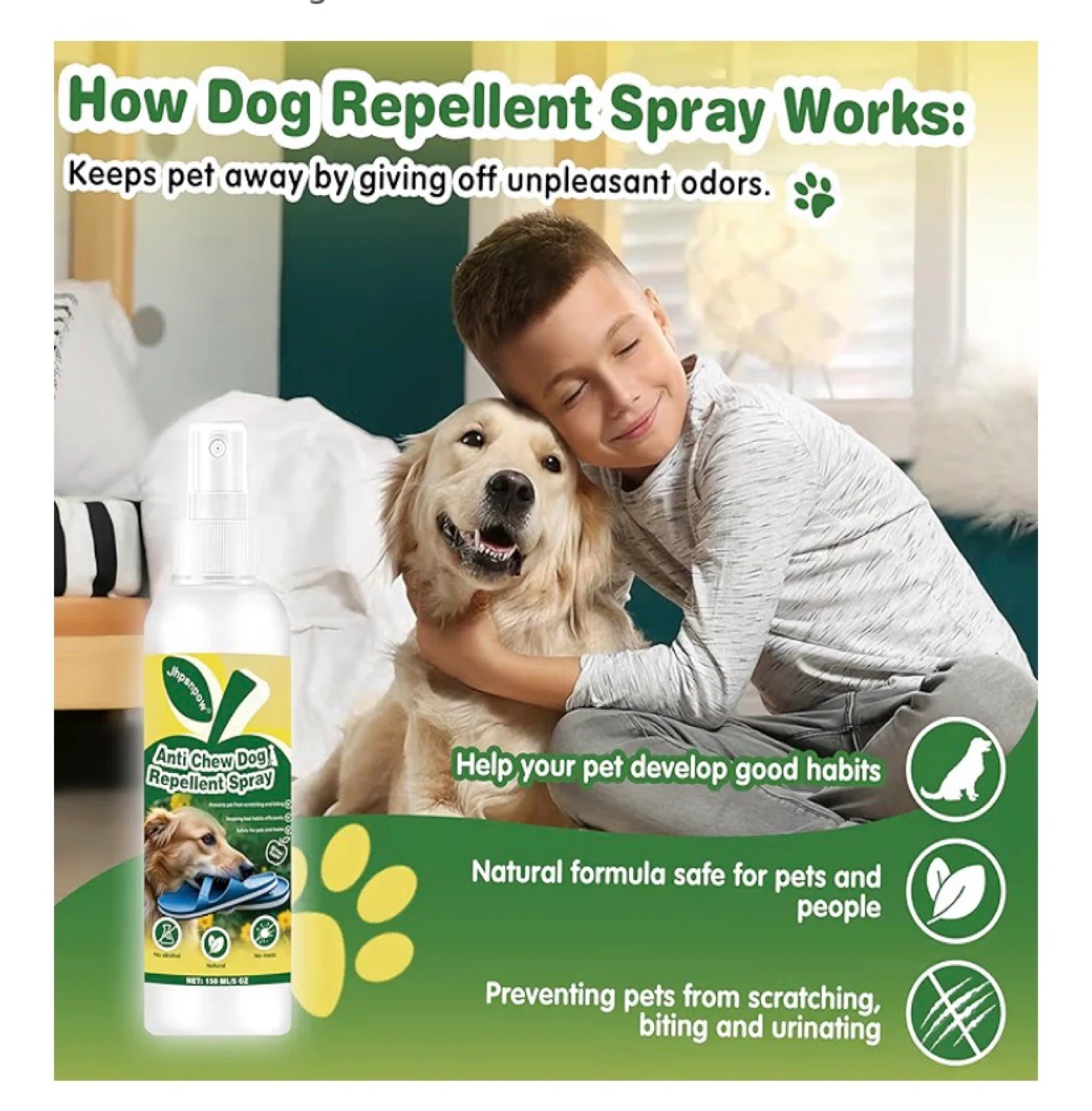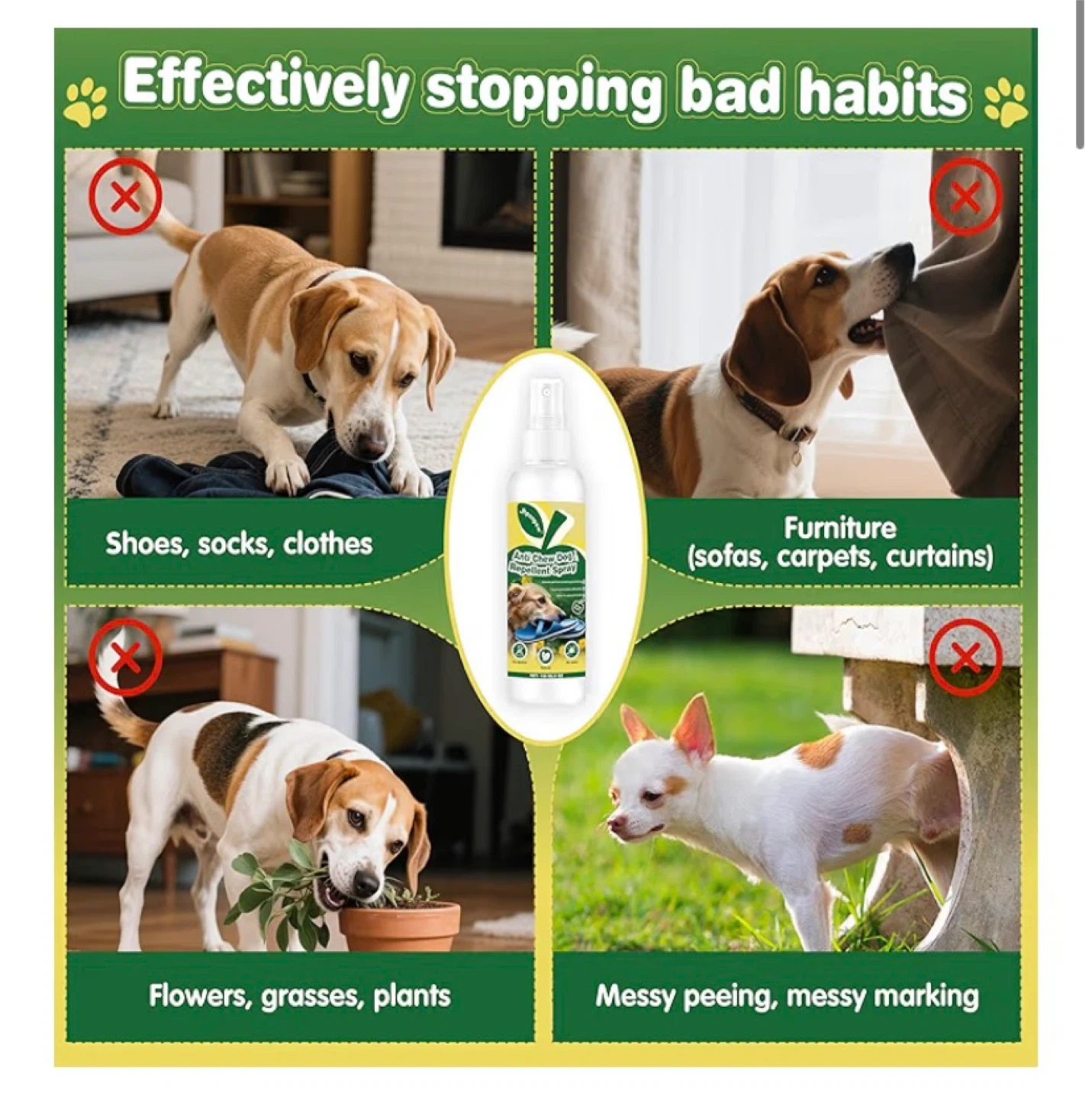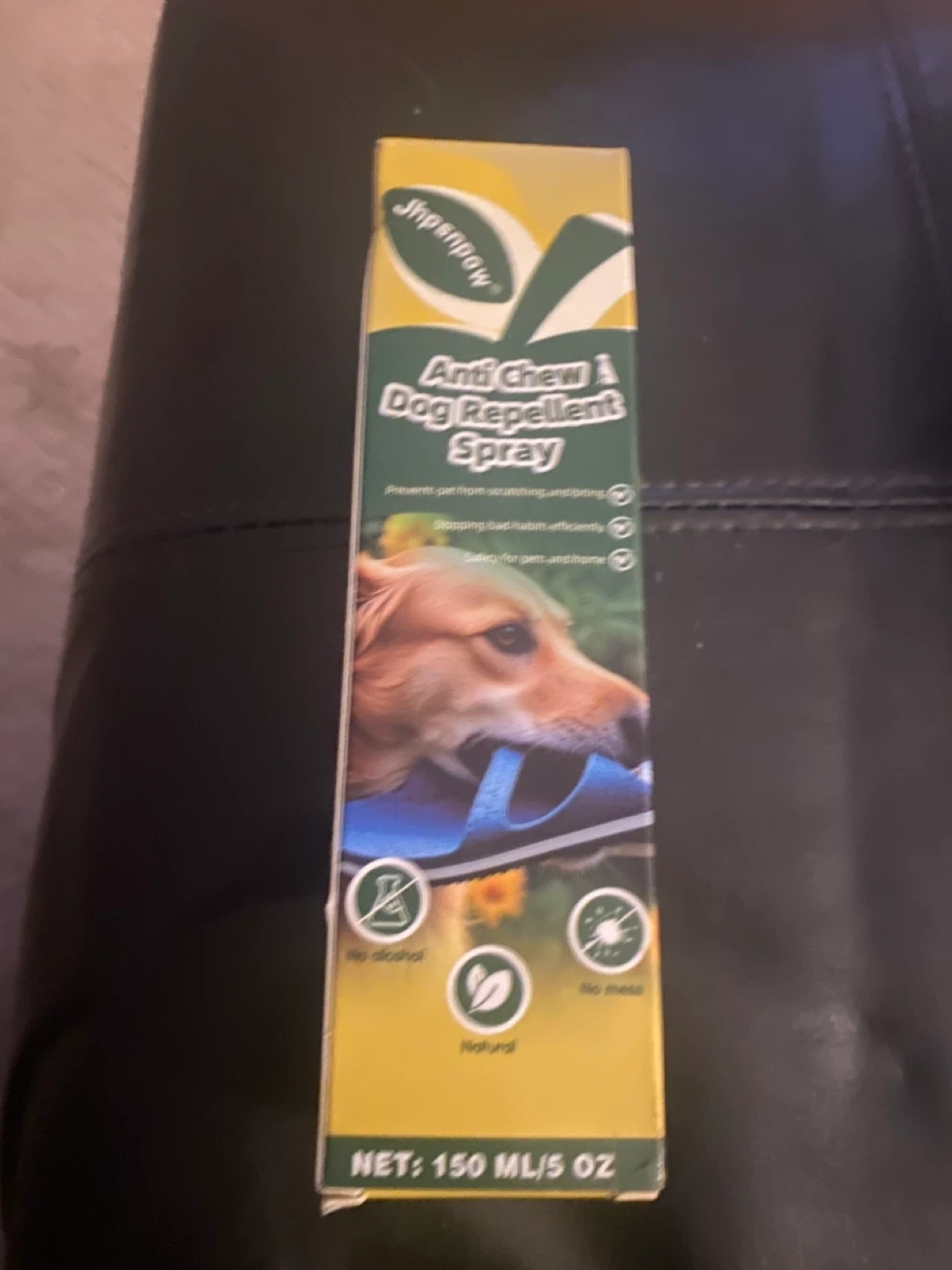 This is a new unopened Anti Chew Dog Repellent Spray. It's a natural formula safe for pets and people. It helps prevent pets from scratching, biting, and urinating. Expiry date 04/2027