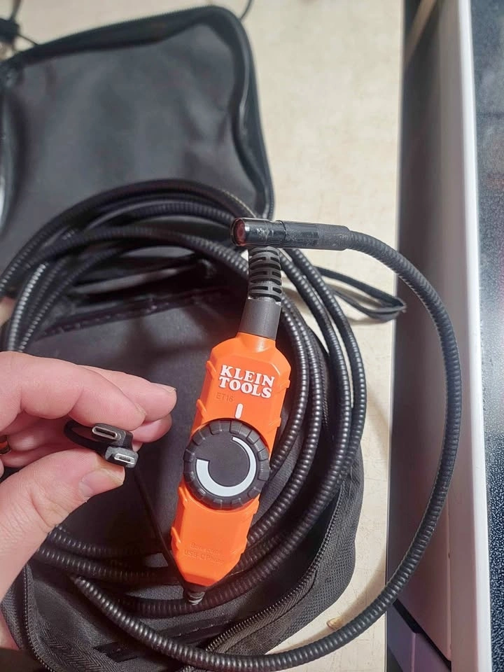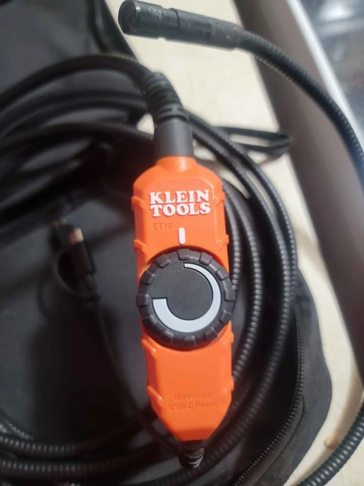 Klein Tools ET16 Borescope features a 9 mm camera with 6 LEDs on a 10 ft. (3 m) armored gooseneck cable. It has a USB Type-C (and micro-USB) connection for most Android smartphones and devices (OTG 4.0 or higher). View camera and video output on your Android device using the free Klein Tools ET16 Borescope App. The ET16 is powered by your device connection, so no batteries are needed.