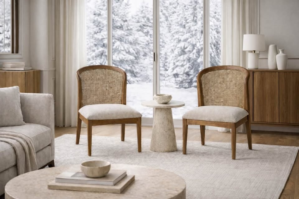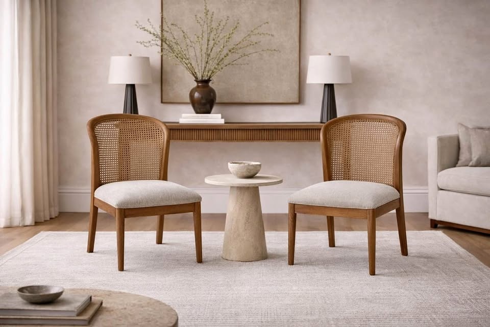 Solid Wood Cane Accent Chairs (Set of 2) – Brand New