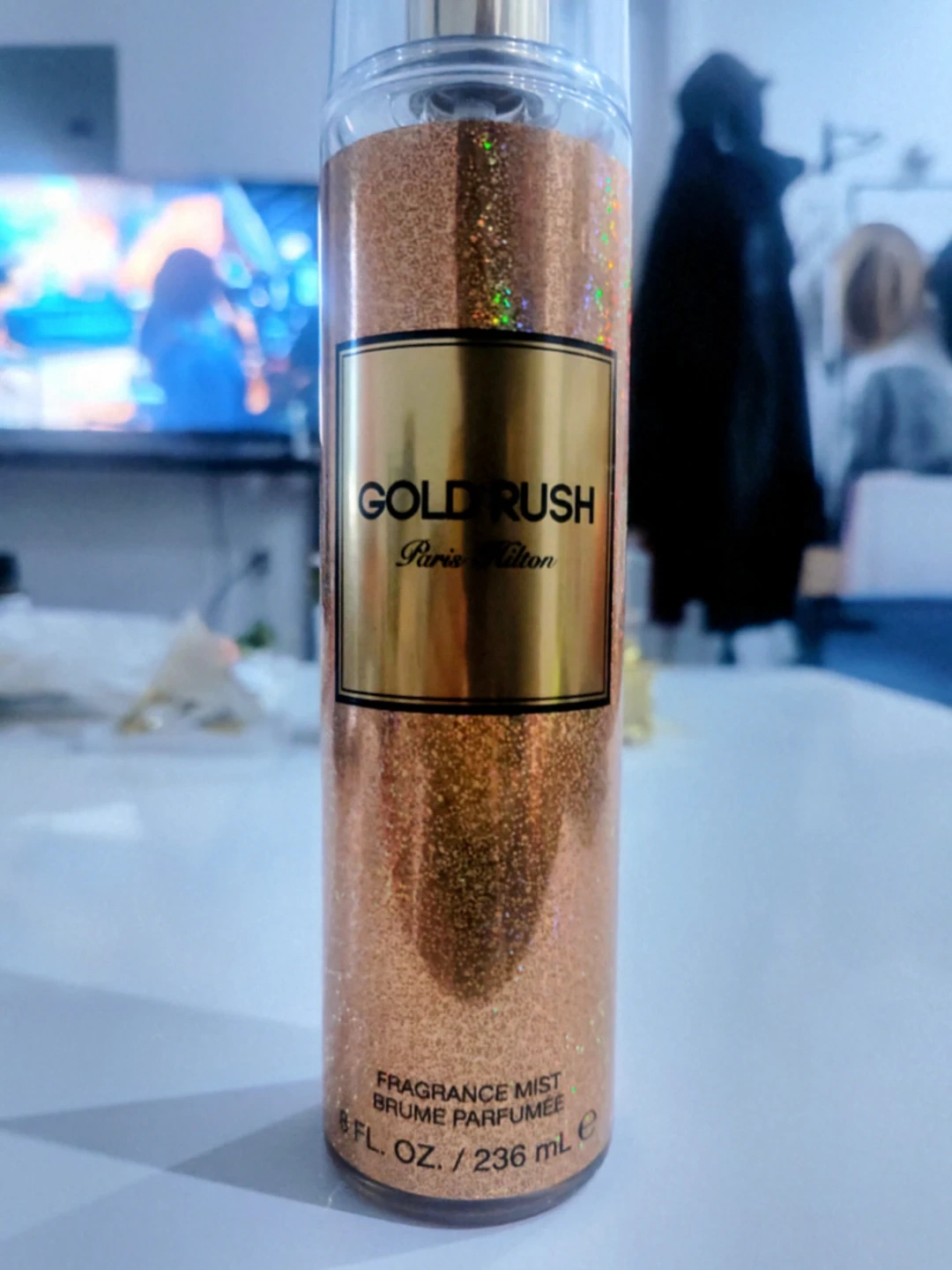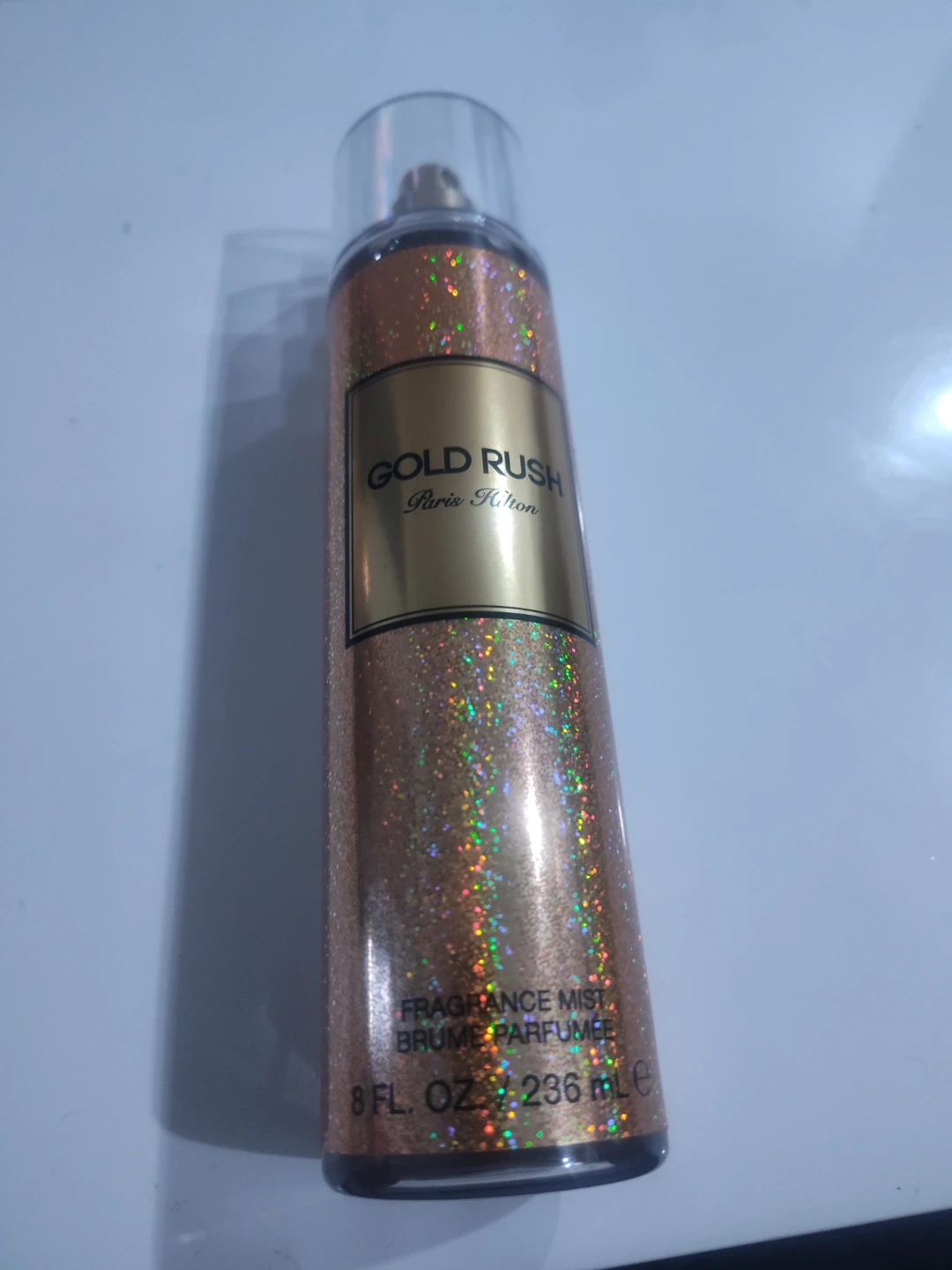 This is the Paris Hilton Gold Rush fragrance mist. It's a 8 fl oz / 236 mL bottle. A perfect size for travel or everyday use! 95% filled