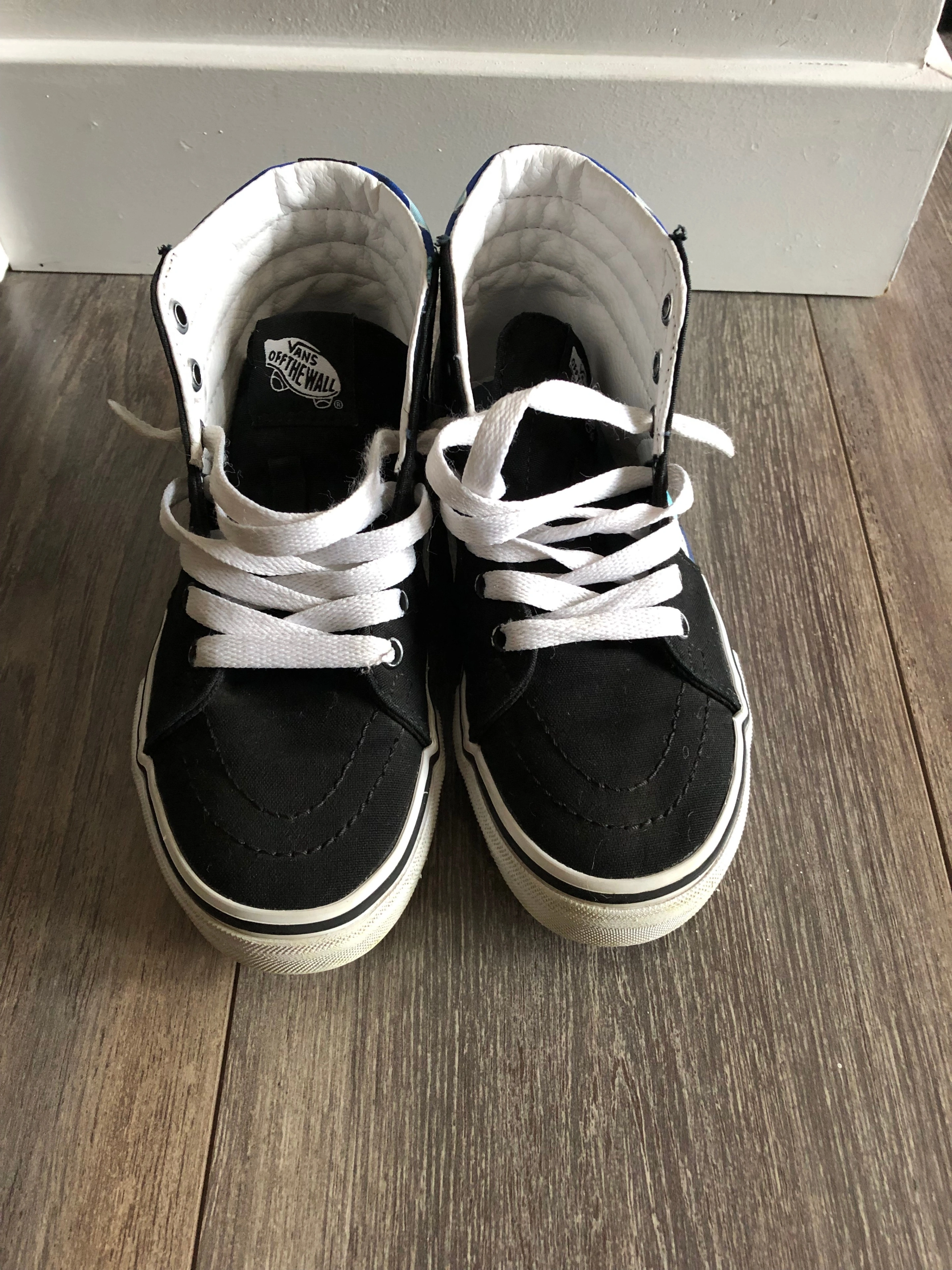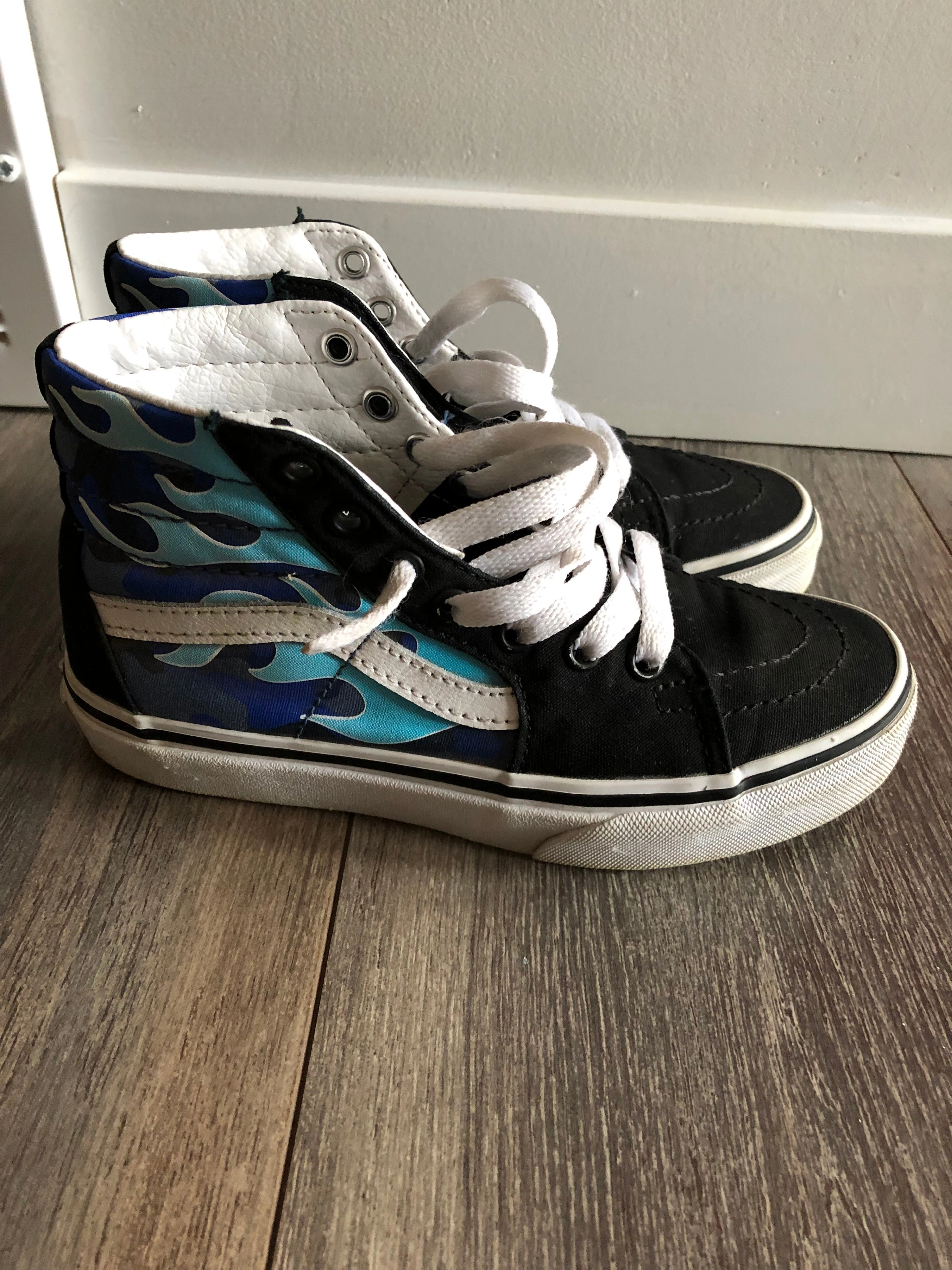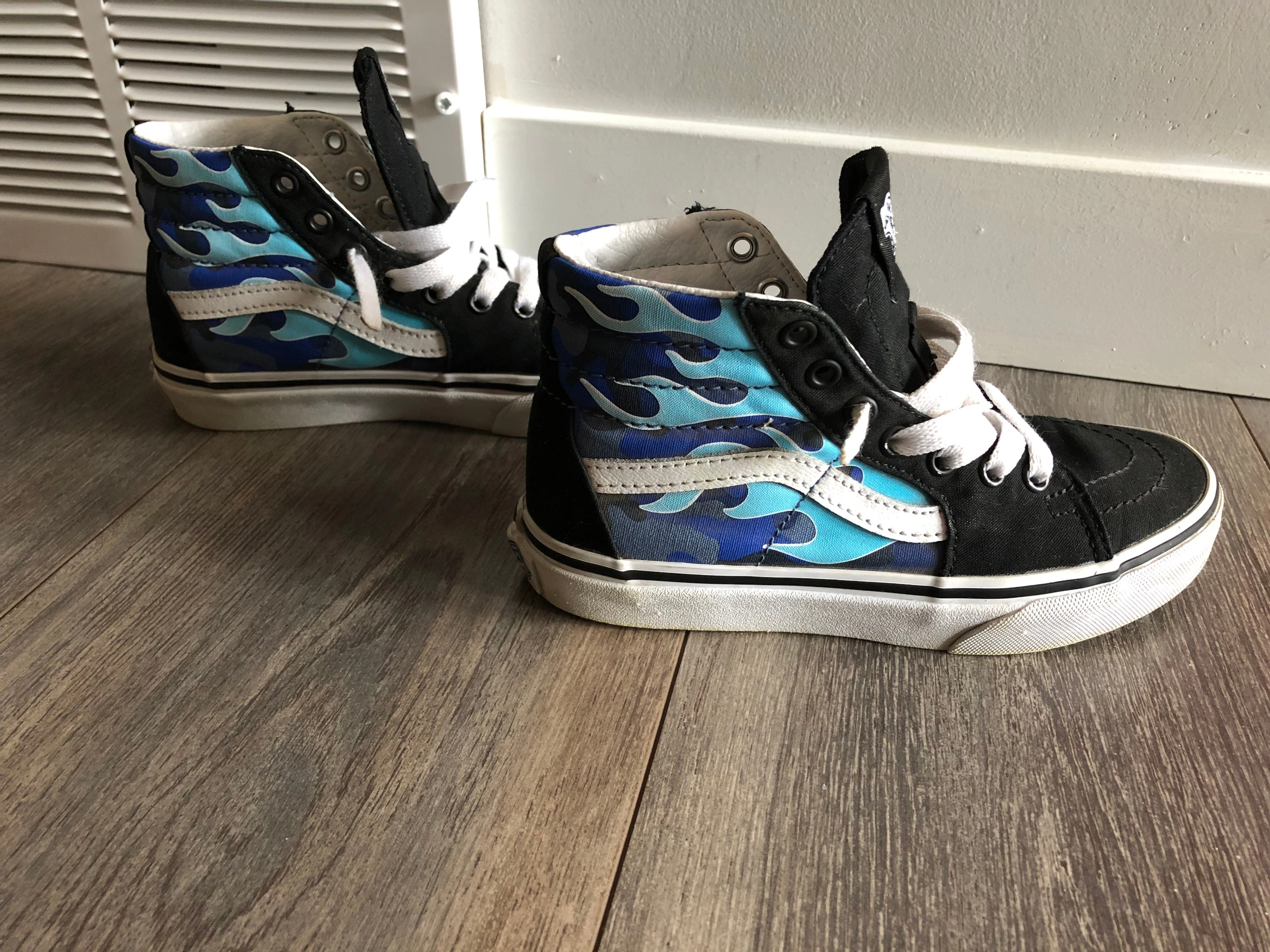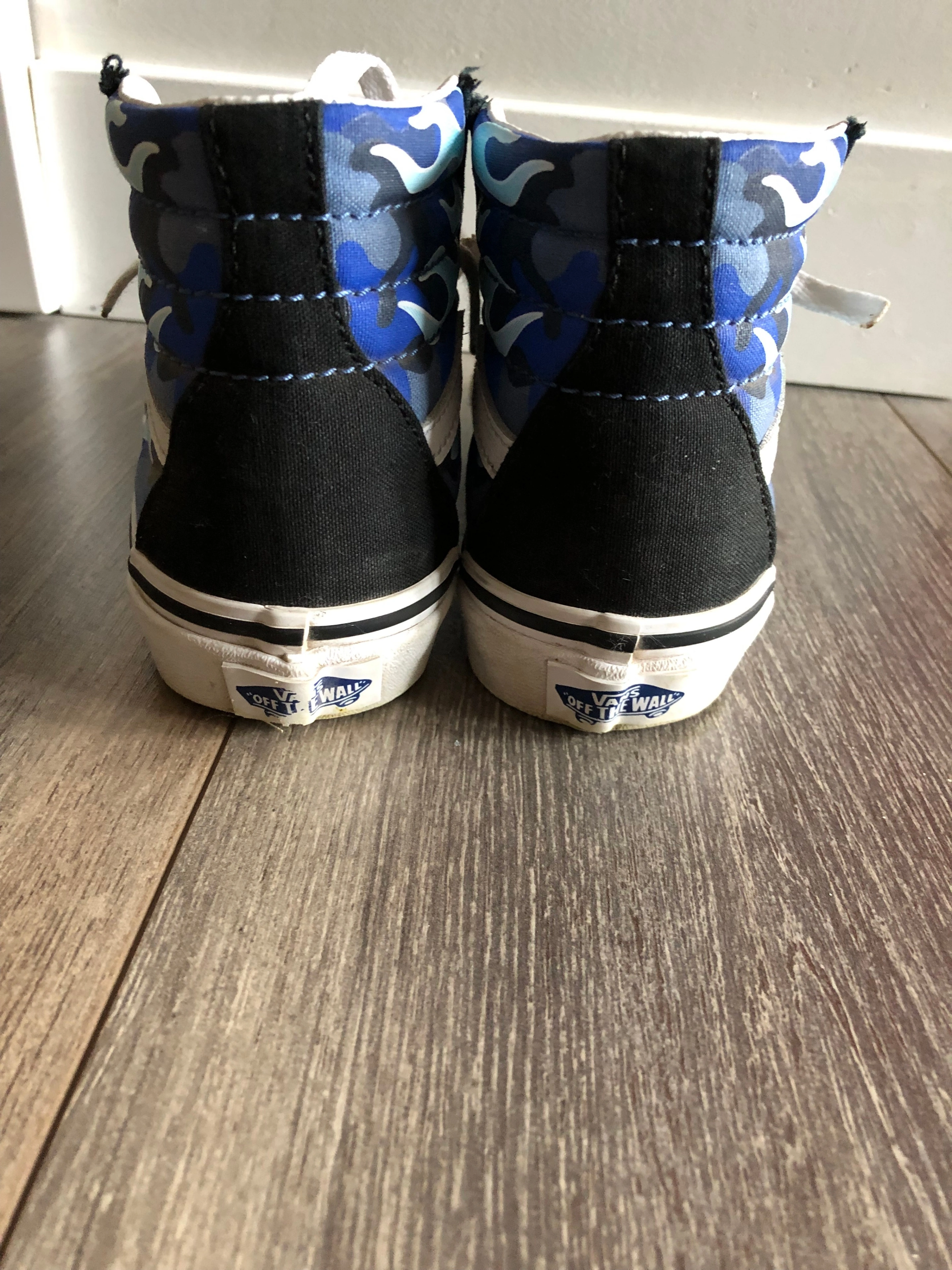 Vans Kids Sk8-Hi Camo Flame Blue Ice Skate Shoes,KIDS Size 1. Like new , used just maybe 5 times. Now they are small. Pick up ONLY in Bowness nw.
