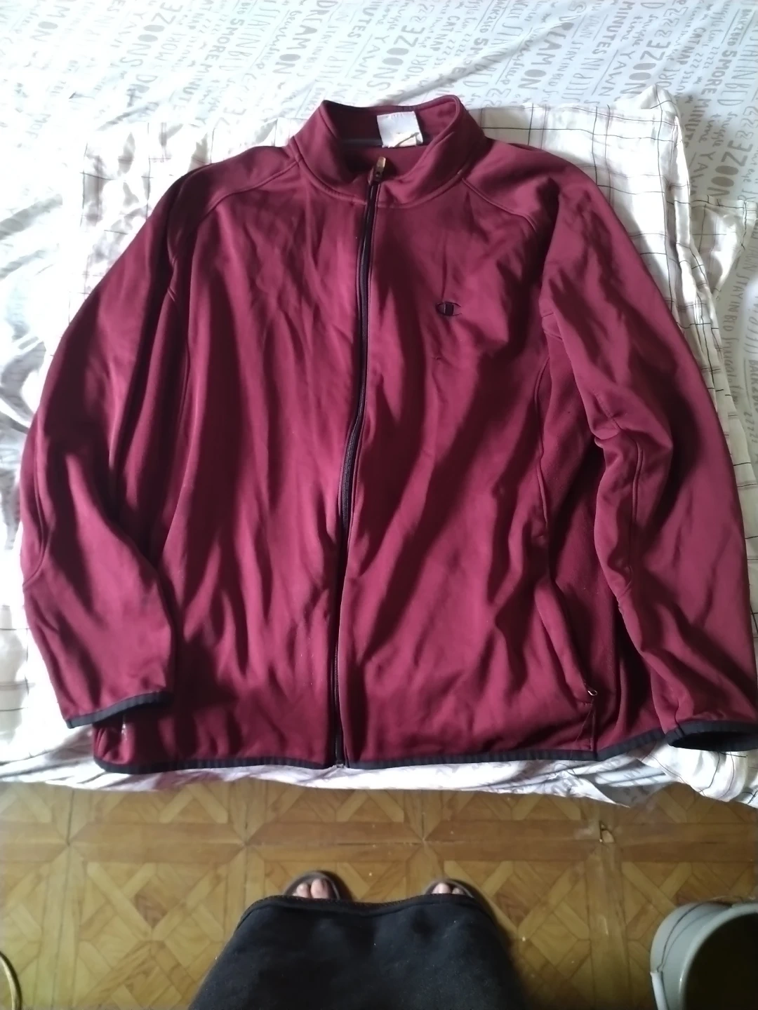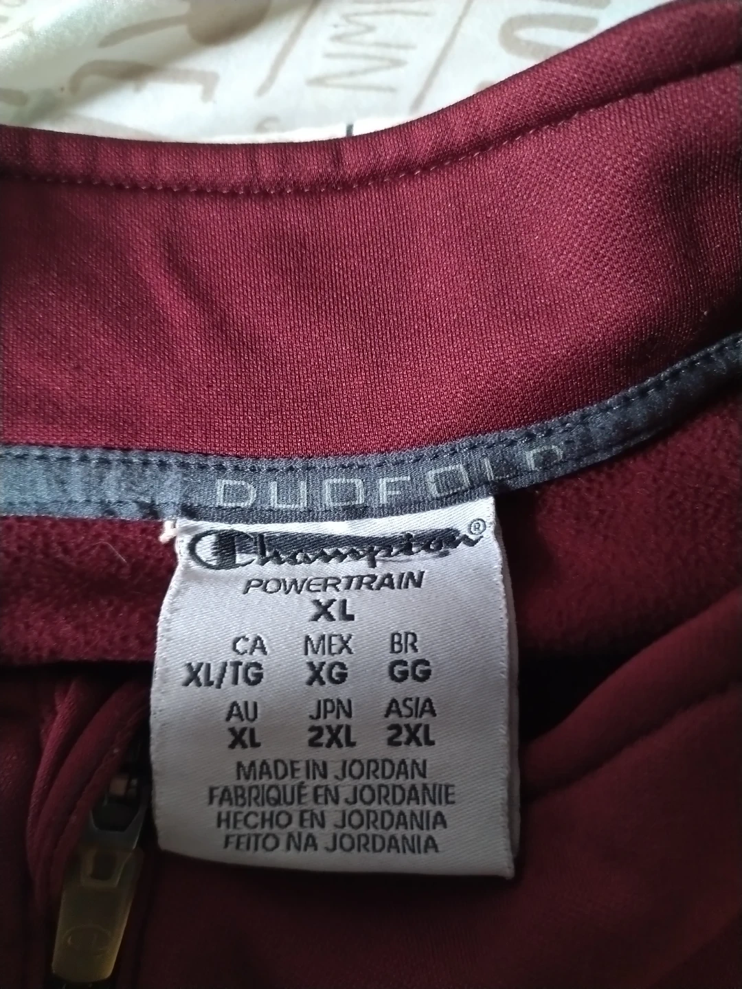 Champion Powertrain full zip jacket in burgundy. It's a size XL. Made in Jordan.