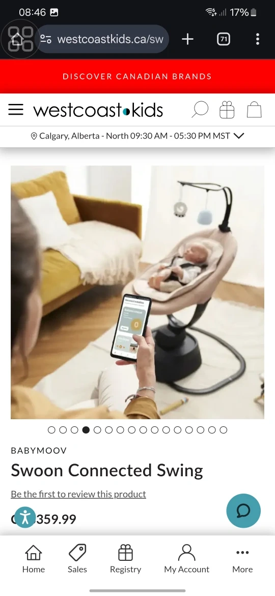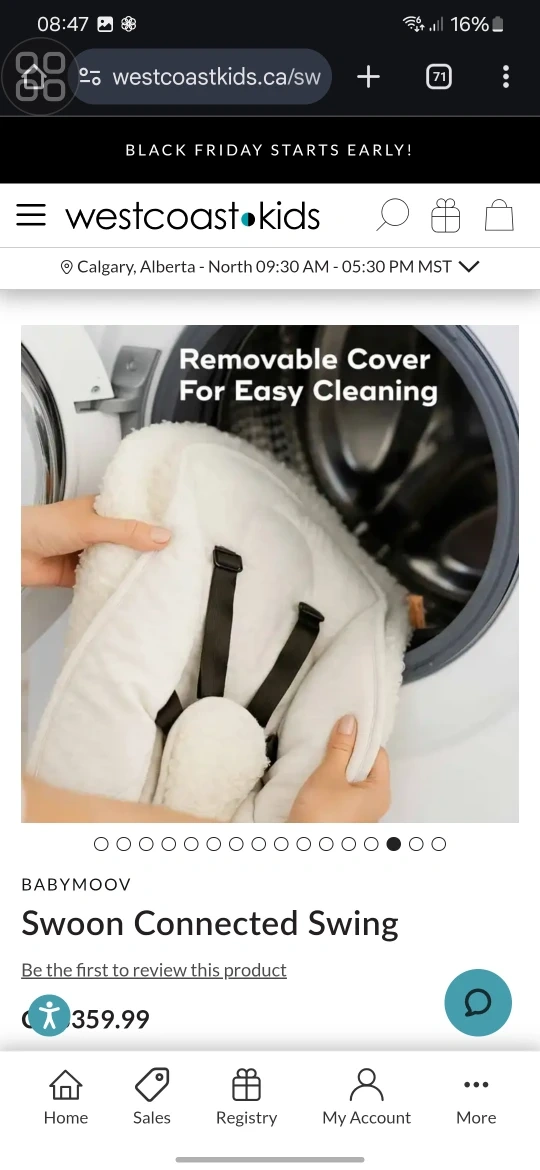 Selling a Babymoov Swoon Connected Swing! It has gentle rocking movements and 5 smooth speeds to mimic being rocked to sleep in the arms of a parent.