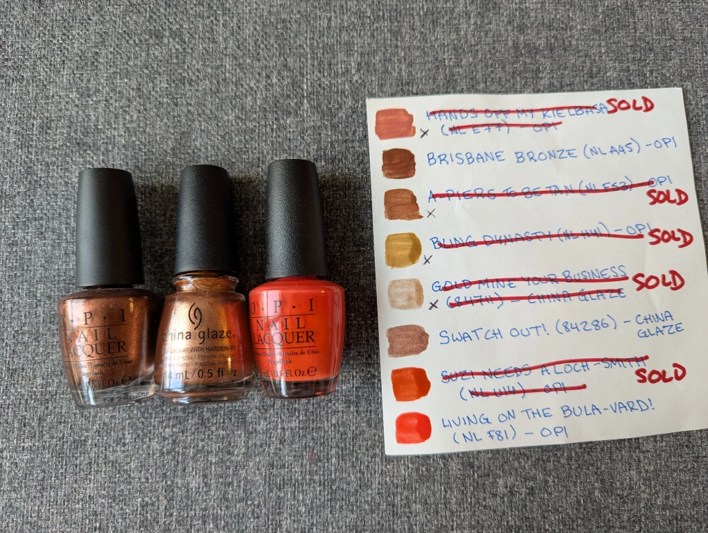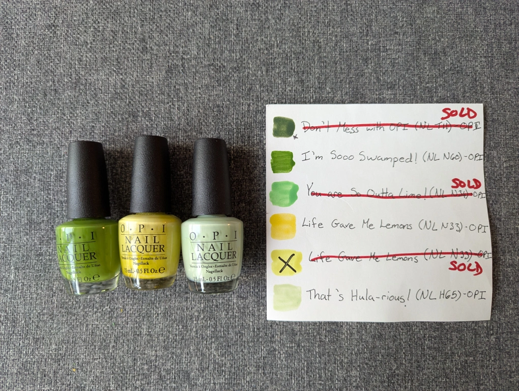 Nail Polish $5 each or $20 for 5 (Oranges, Yellows and Greens)