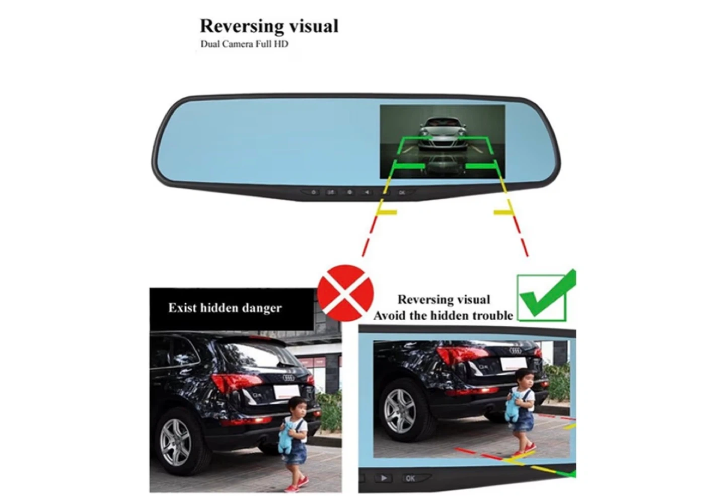 Vehicle Blackbox DVR Rearview Mirror Dual Channel HD 1080P