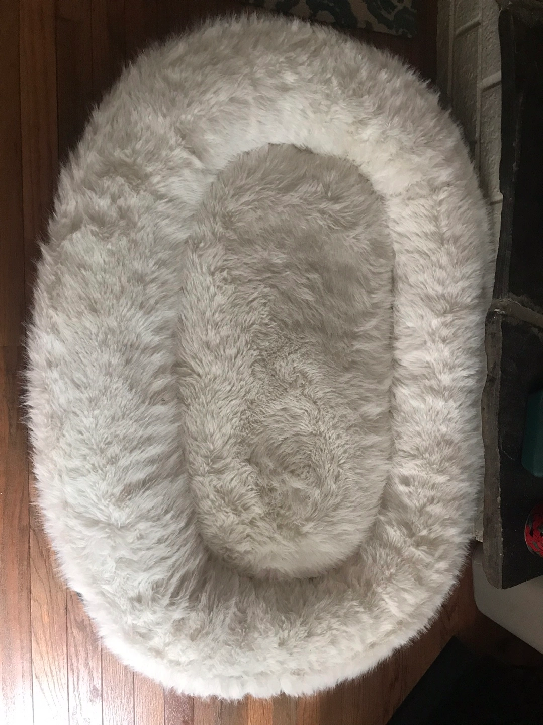Super soft and comfy oval dog bed. It's made from plush, faux fur material. Its neutral white colour will go with any decor. Great for small to medium-sized pets!