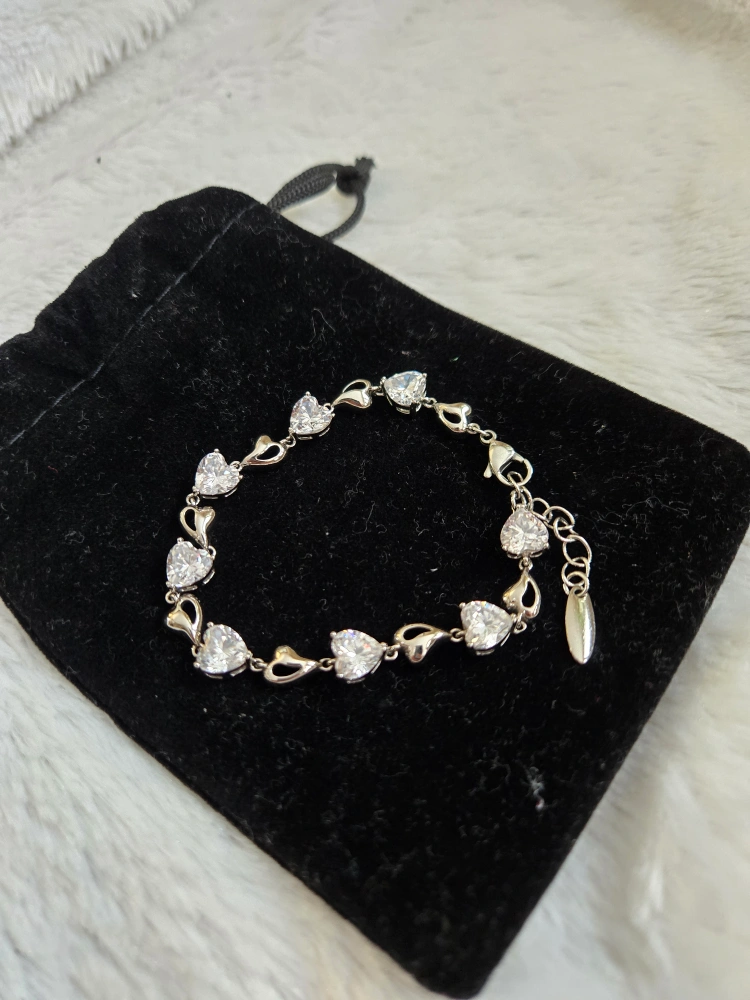 NWOT Silver heart bracelet with cubic zirconia stones. Comes with a small velvet pouch.