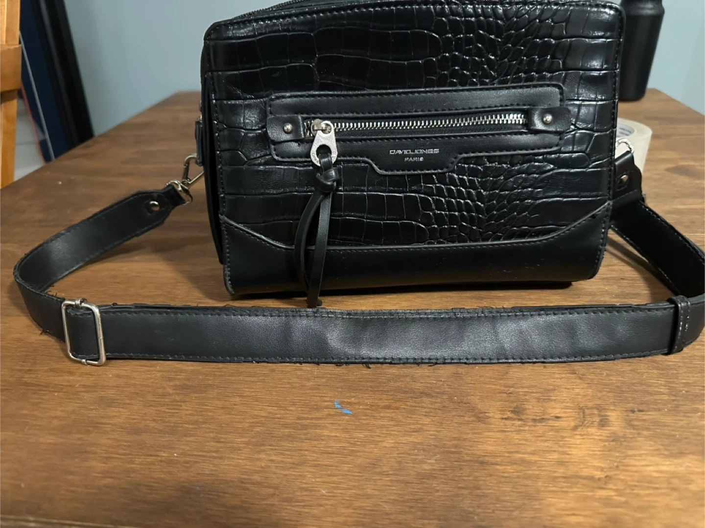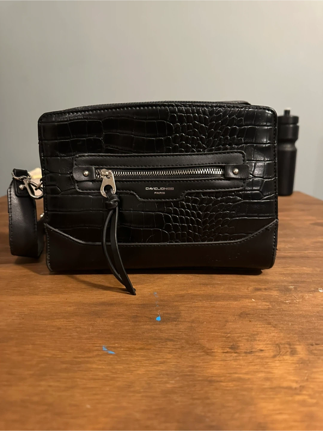 David Jones Paris Black Croc Embossed Shoulder Bag